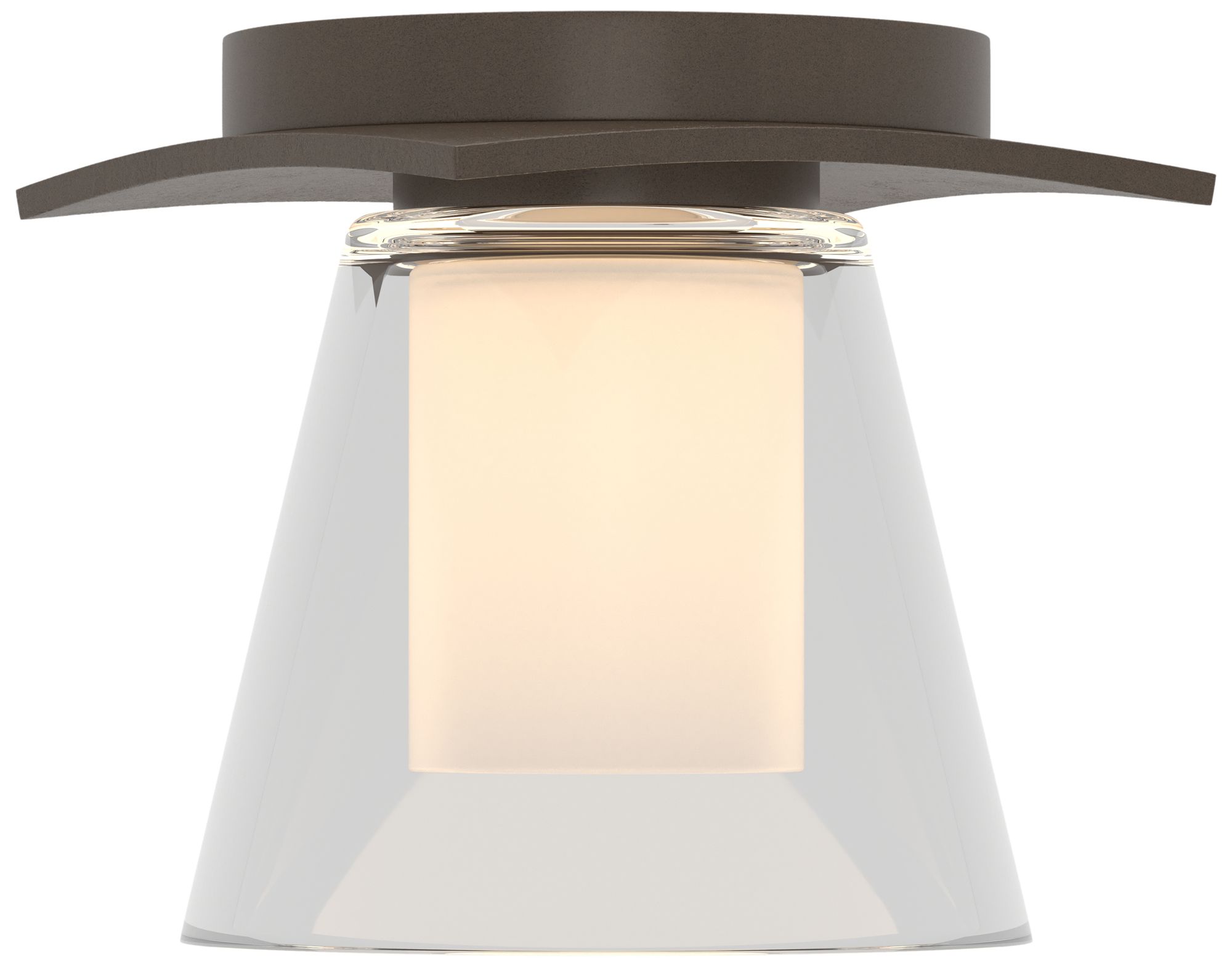 Wren 5.1" Wide Bronze Flush Mount With Opal and Clear Glass Shade