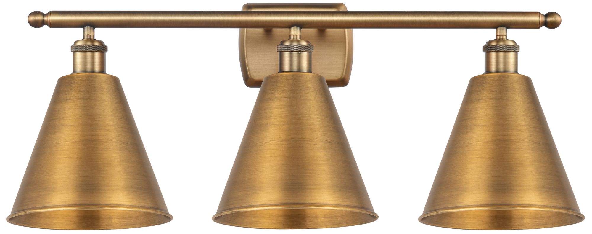 Ballston Cone 28"W 3 Light Brushed Brass Bath Light w/ Brushed Brass S