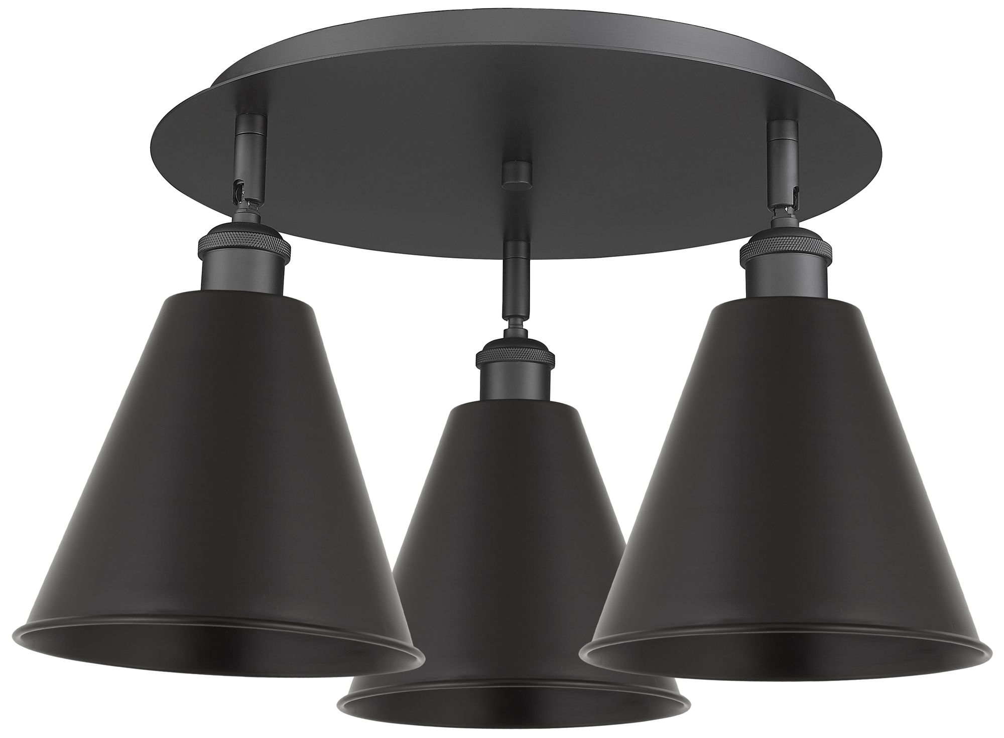 Ballston Cone 19.75" Wide 3 Light Matte Black Flush Mount With Black S