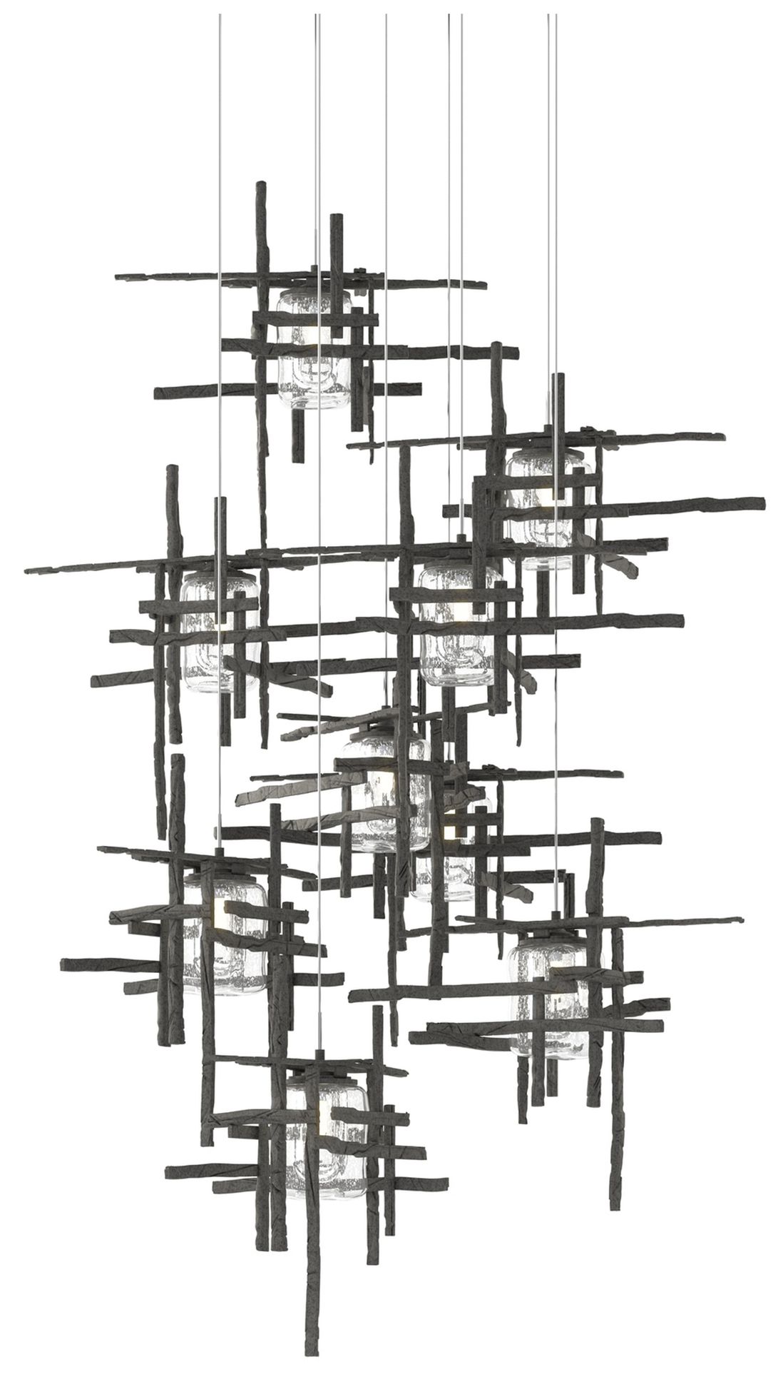 Tura 29.6"W 9-Light Round Natural Iron Long Pendant w/ Seeded Glass Sh