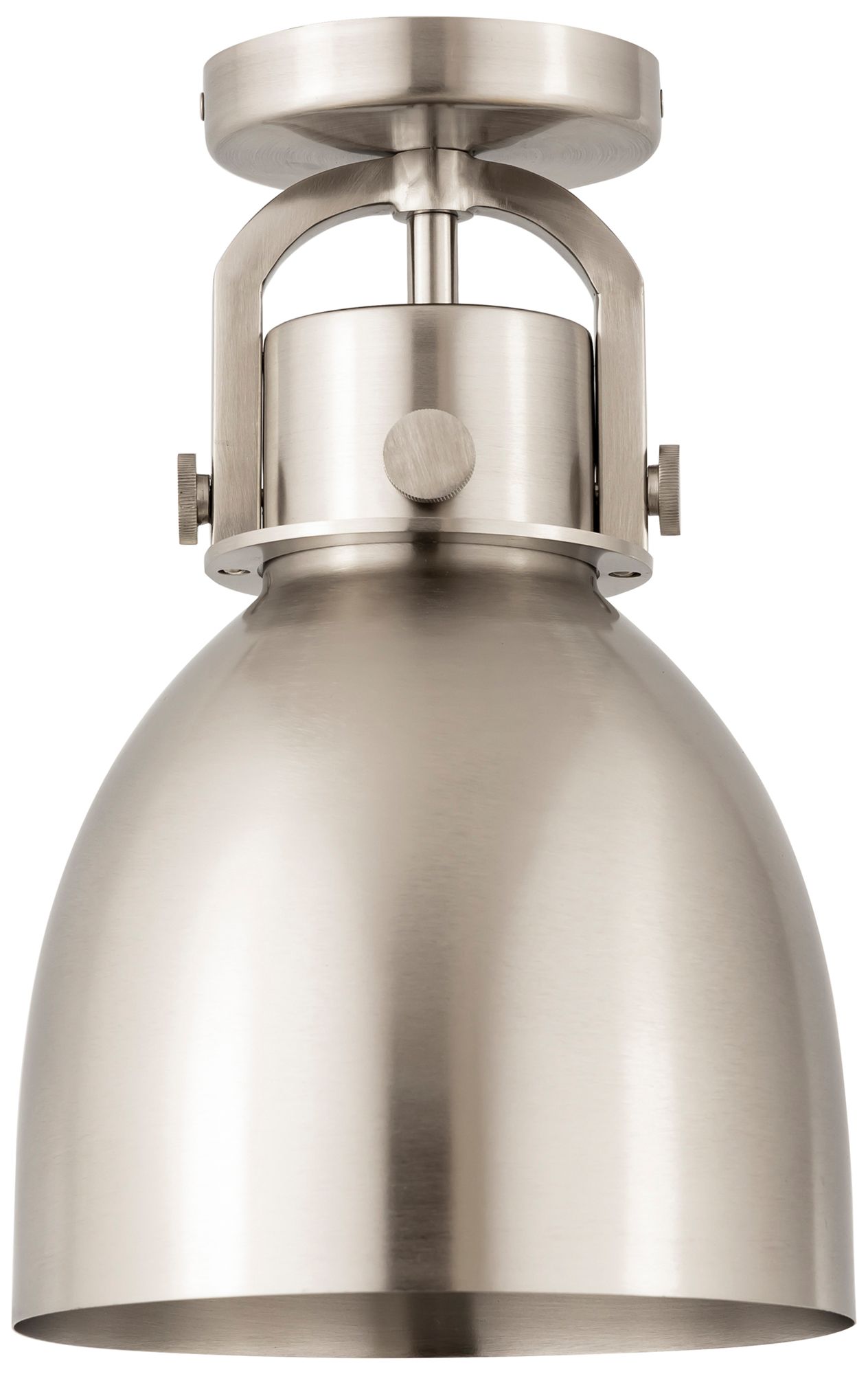 Newton Bell 8" Wide Satin Nickel Flush Mount With Satin Nickel Shade