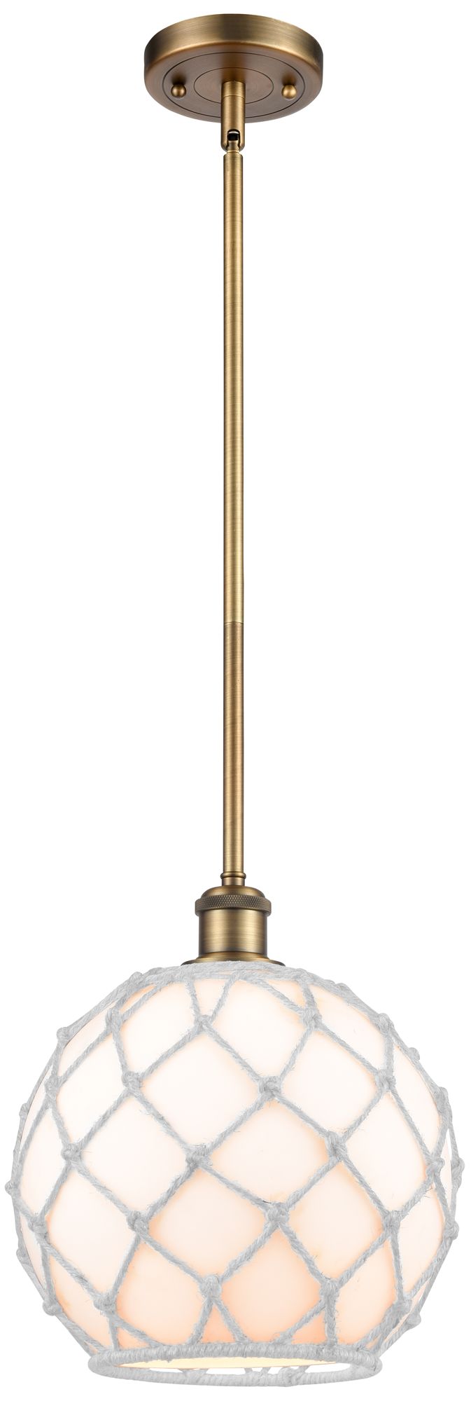 Farmhouse Rope 10"W Brushed Brass Stem Mini Pendant w/ White Rope Shad