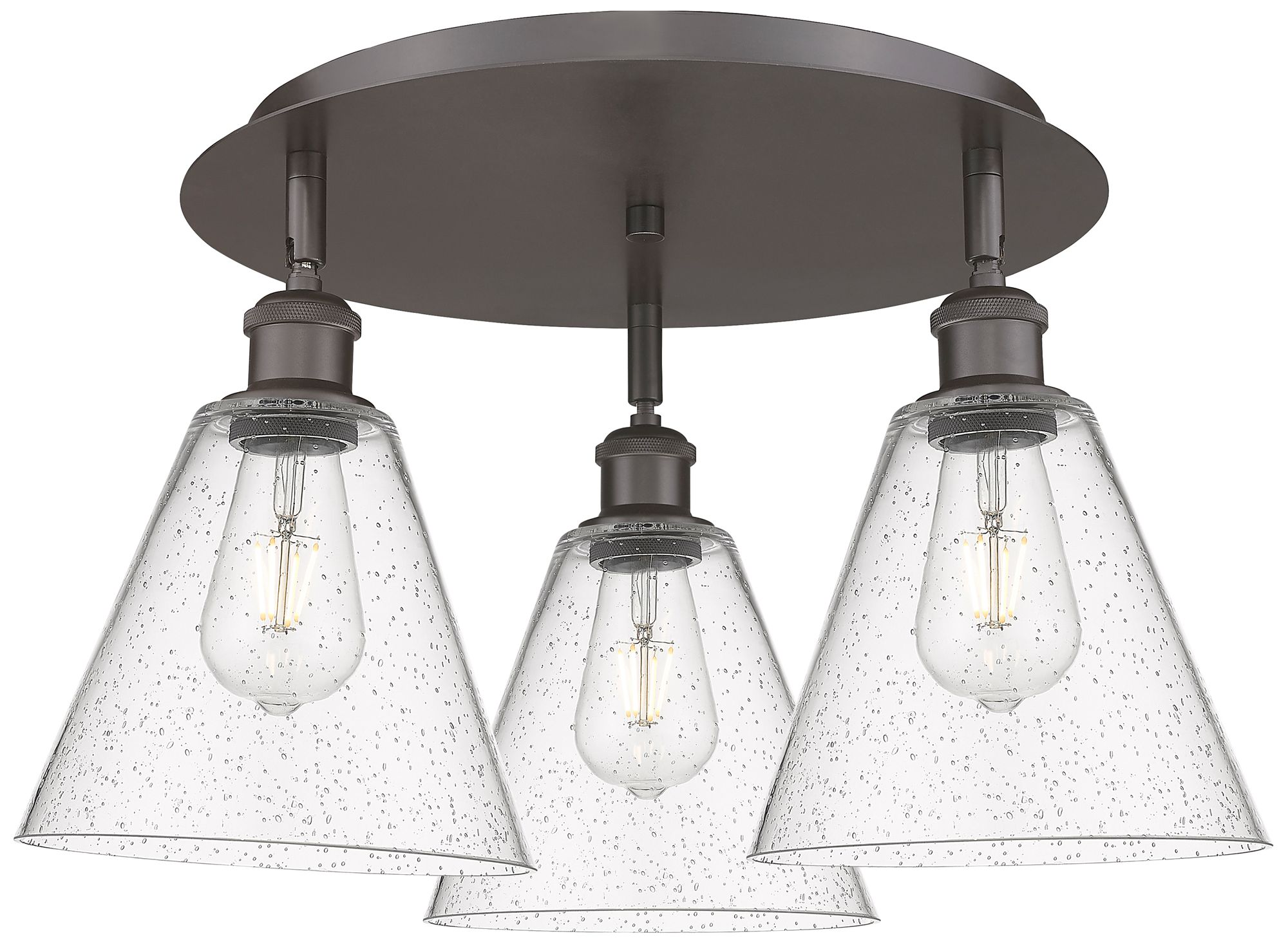 Berkshire 19.75"W 3 Light Oil Rubbed Bronze Flush Mount w/ Seedy Shade