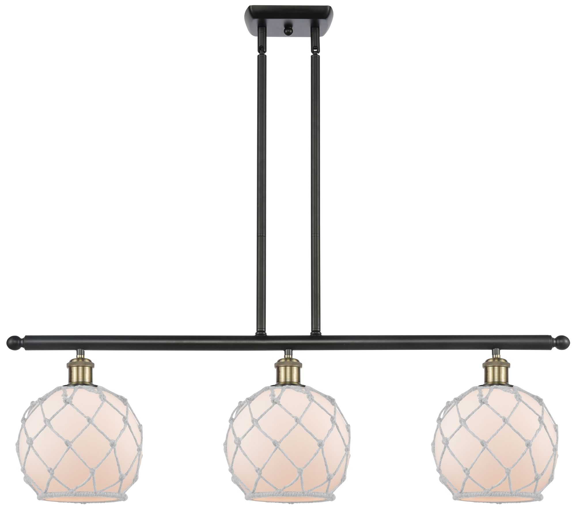 Farmhouse 36"W 3 Light Black Brass Island Light w/ White Shade