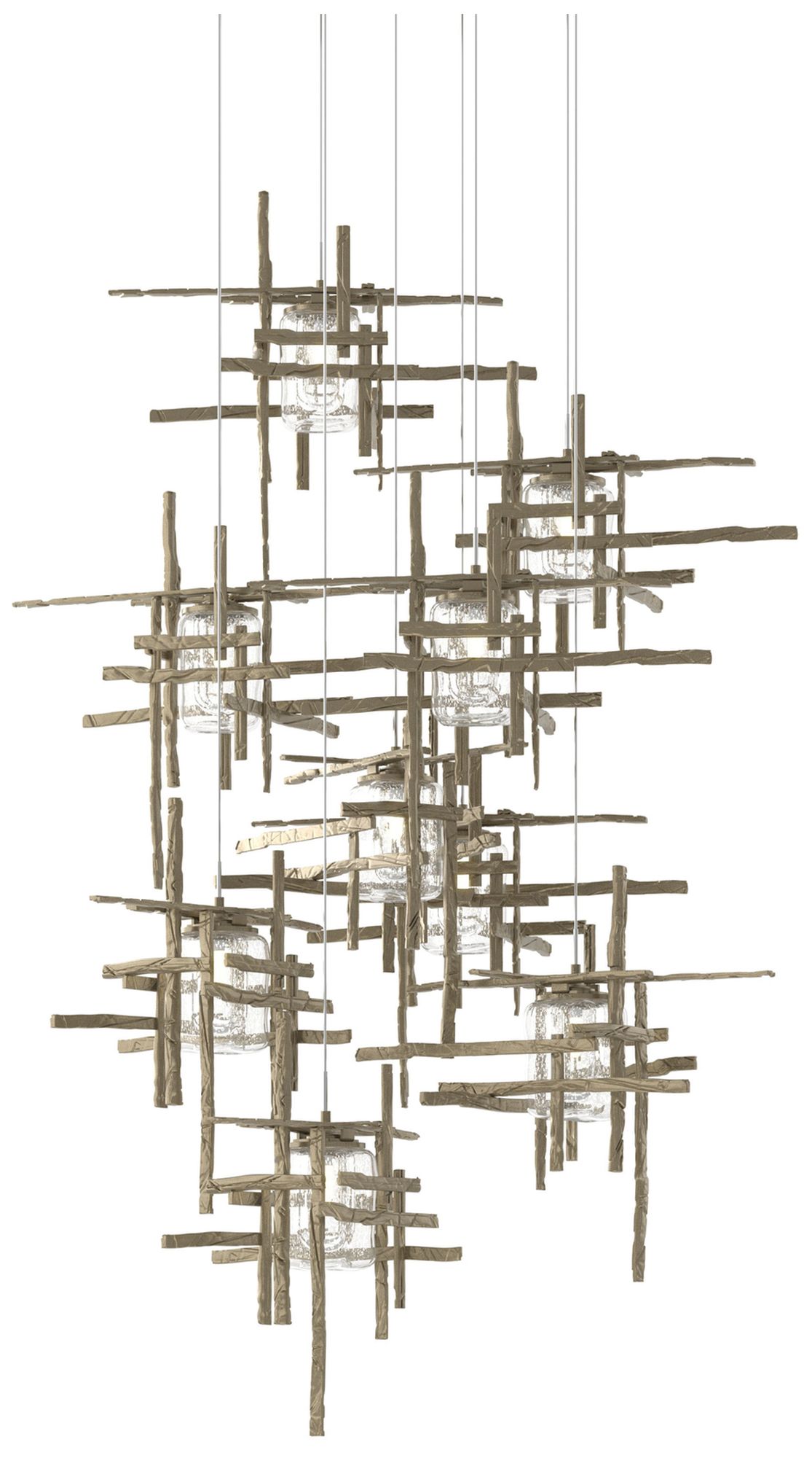 Tura 29.6"W 9-Light Round Soft Gold Long Pendant w/ Seeded Glass Shade