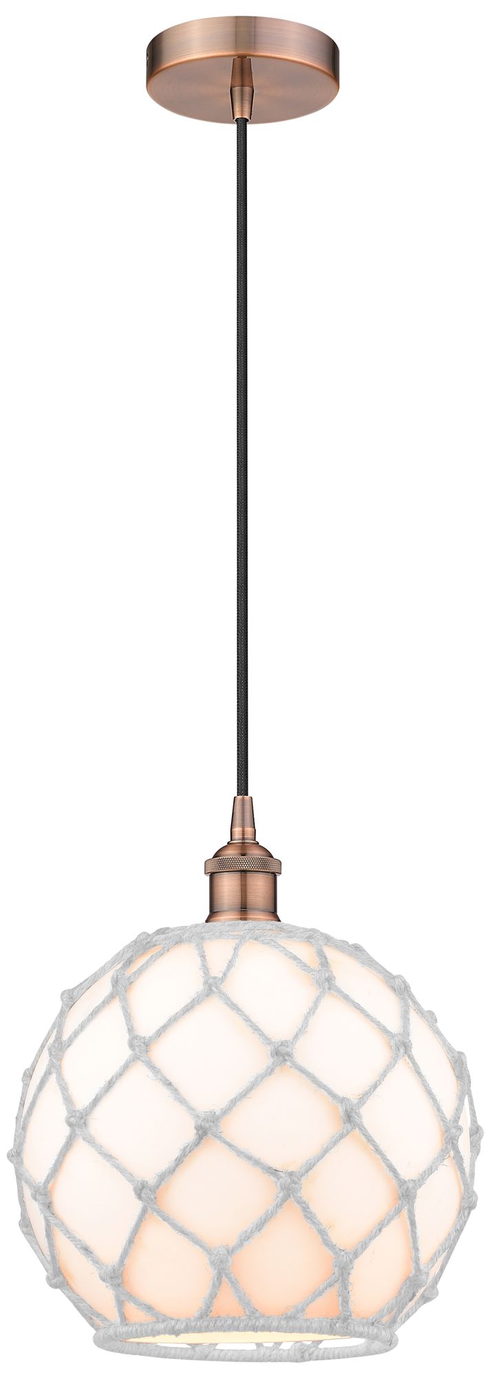 Farmhouse 10" Copper Mini Pendant w/ White Glass with White Rope Shade