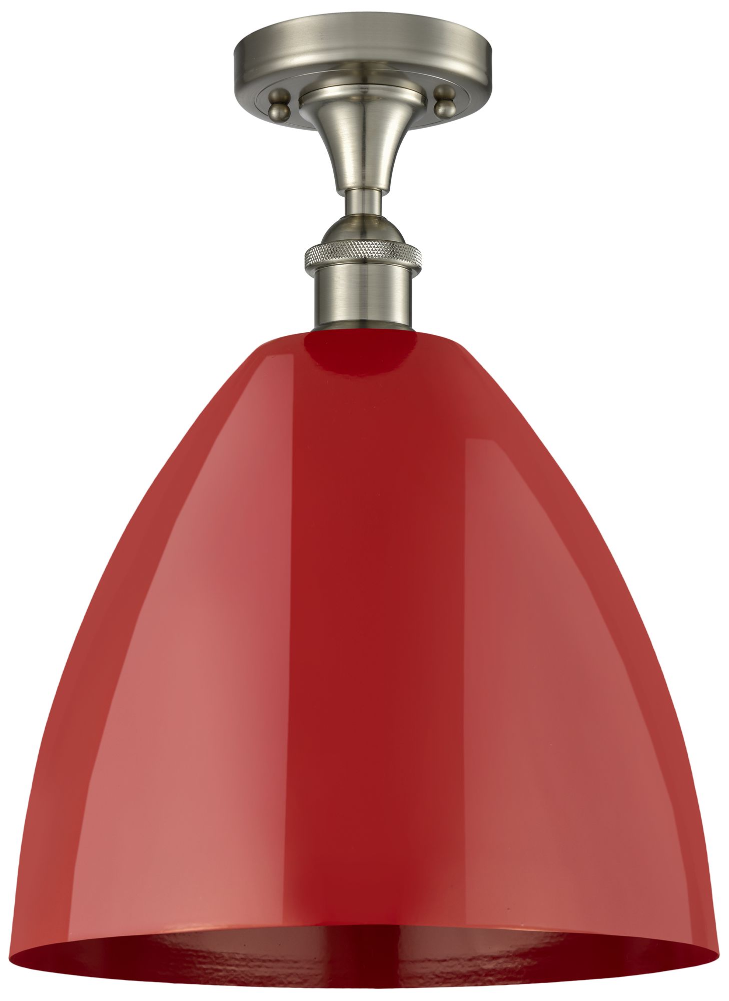 Plymouth Dome 12" Wide Brushed Satin Nickel Semi Flush Mount w/ Red Sh