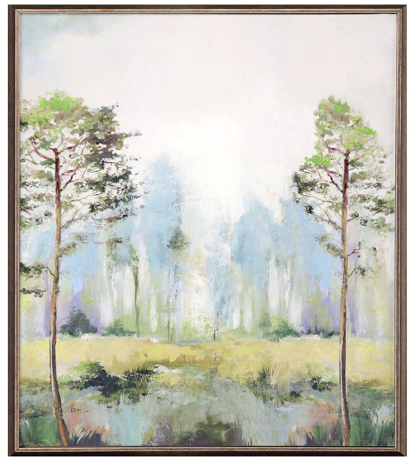Tall Green Trees II 21"W x 25"H Non-Glass Framed Art