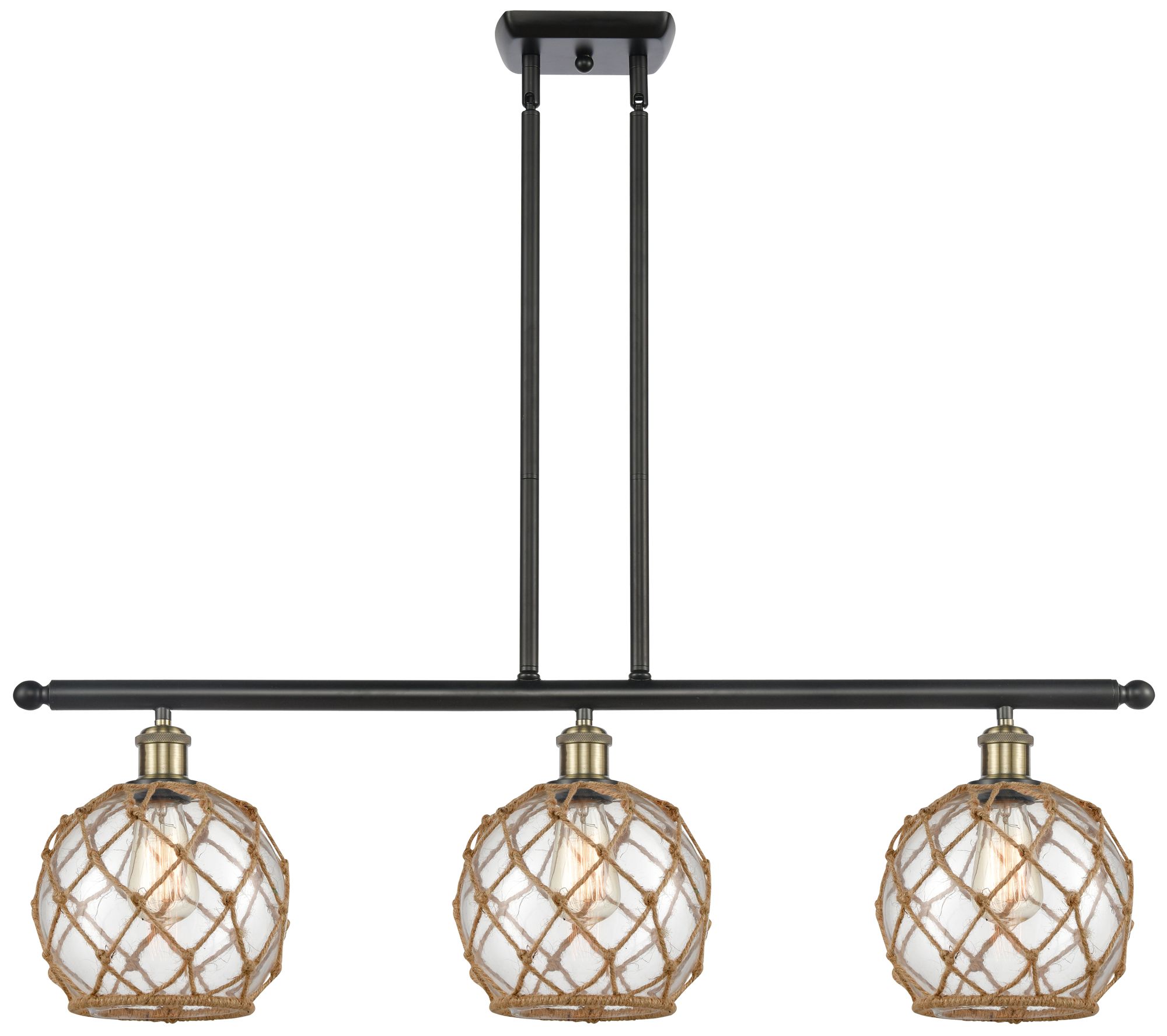 Farmhouse 36"W 3 Light Black Brass Island Light w/ Clear and Brown Sha
