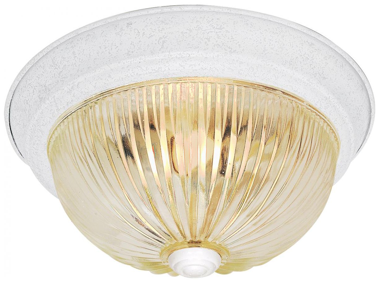 3 Light - 15" Flush with Clear Ribbed Glass - Textured White Finish
