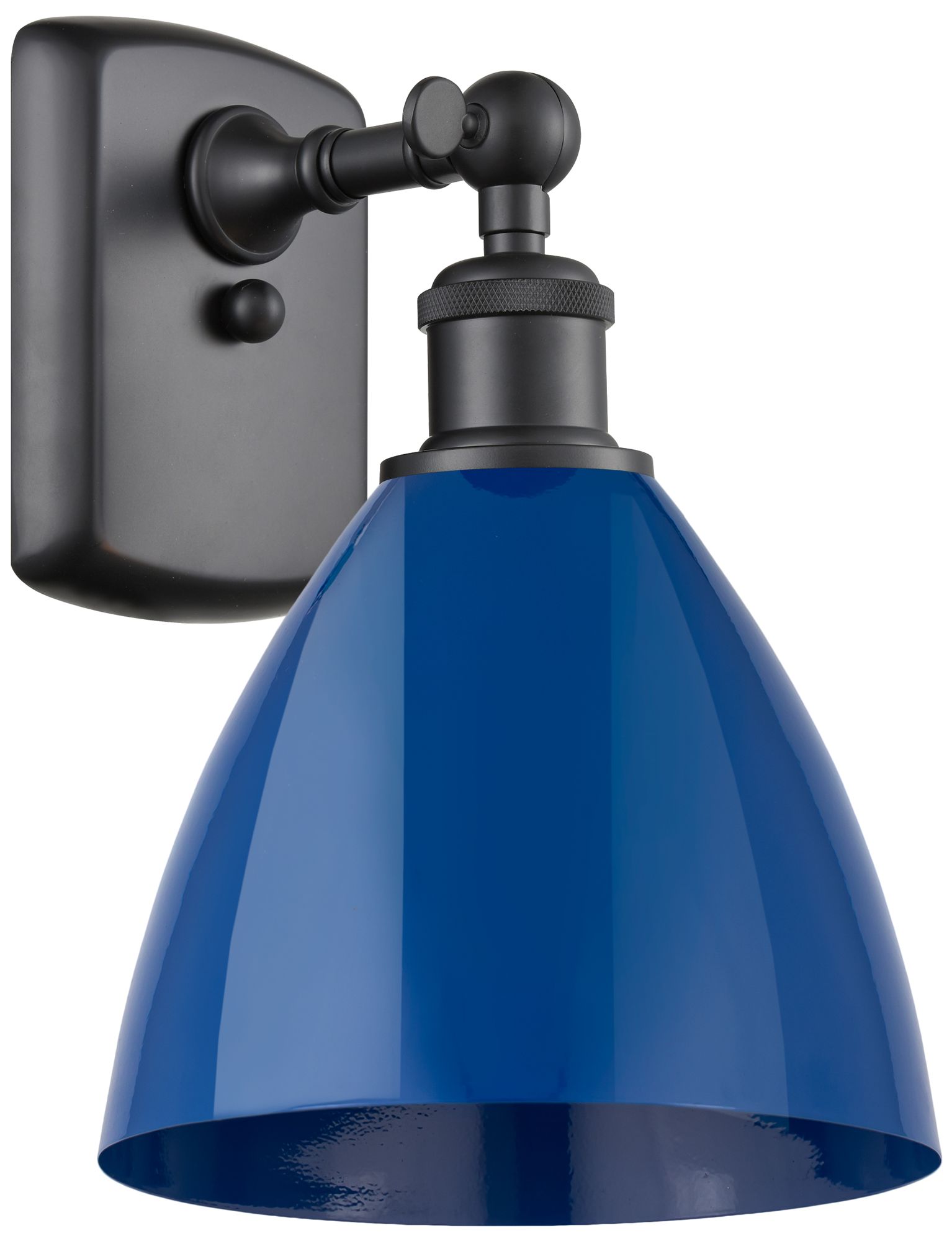 Plymouth Dome 10.75" High Matte Black Sconce w/ Blue Shade