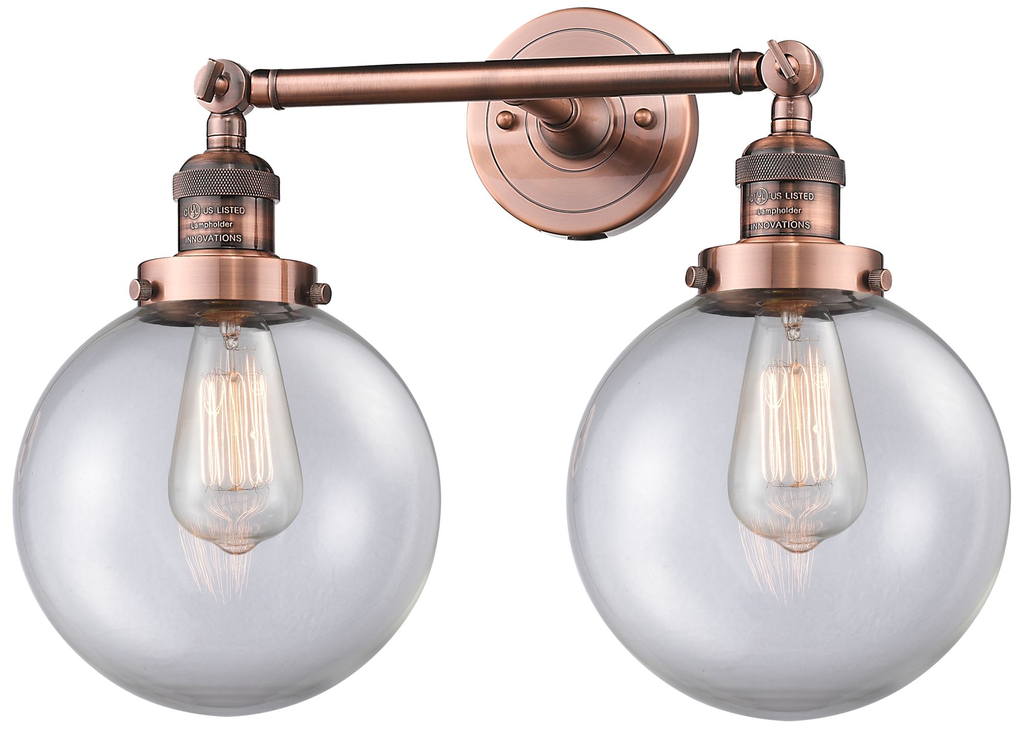 Beacon 19" 2-Light Antique Copper Bath Light w/ Clear Shade