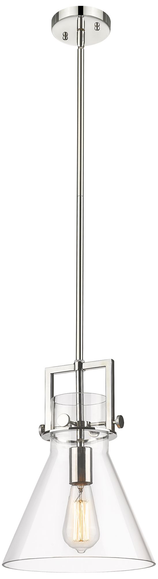 Newton Cone 10" Wide Stem Hung Polished Nickel Pendant With Clear Shad