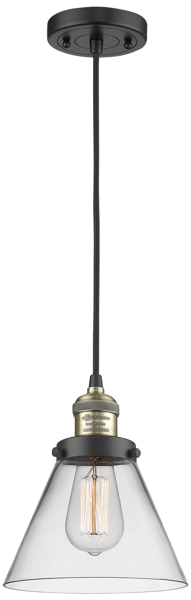 Franklin Restoration Cone 8" LED Mini Pendant - Black Antique Brass -