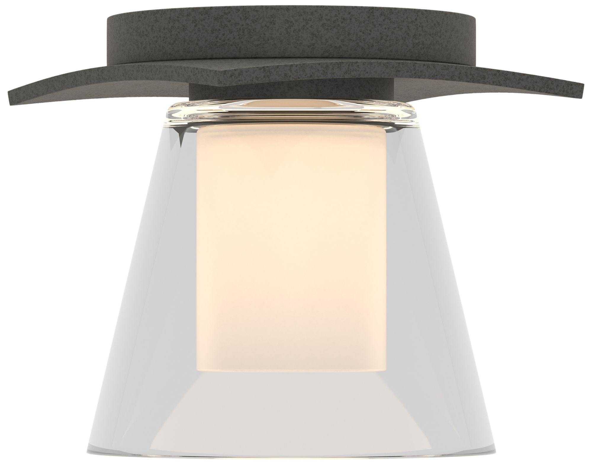Wren 5.1" Wide Natural Iron Flush Mount With Opal and Clear Glass Shad