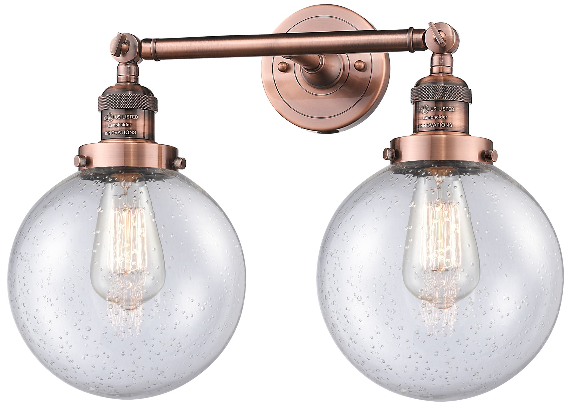 Beacon 19" 2-Light Antique Copper Bath Light w/ Seedy Shade