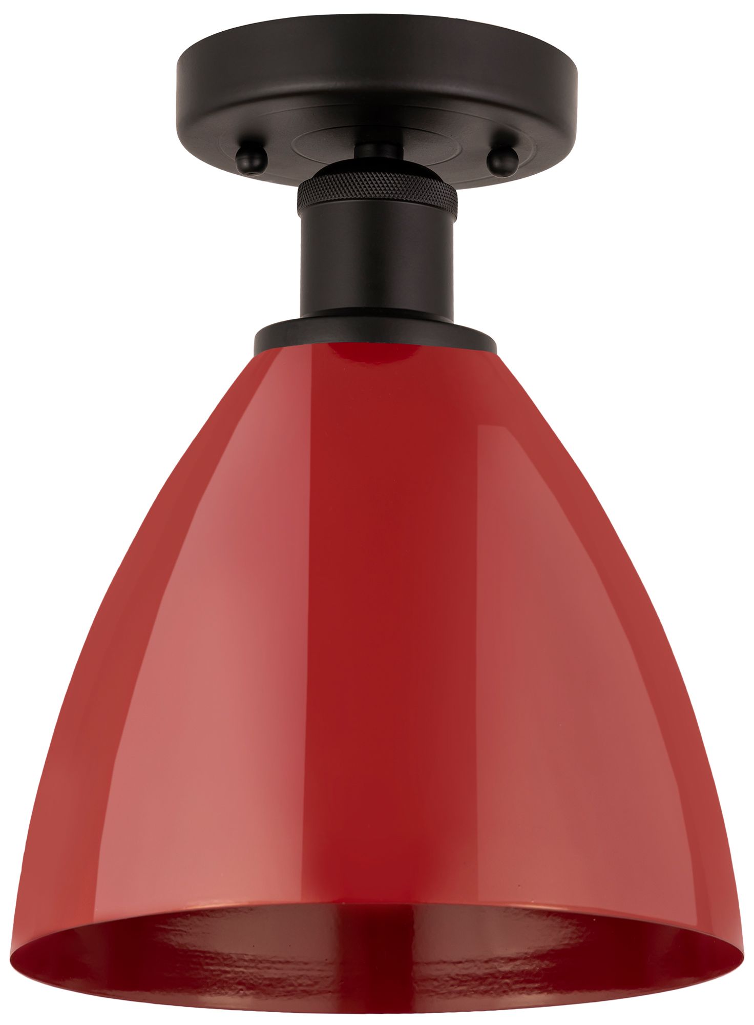 Edison Plymouth Dome 7.5" Wide Bronze Semi Flush Mount w/ Red Shade