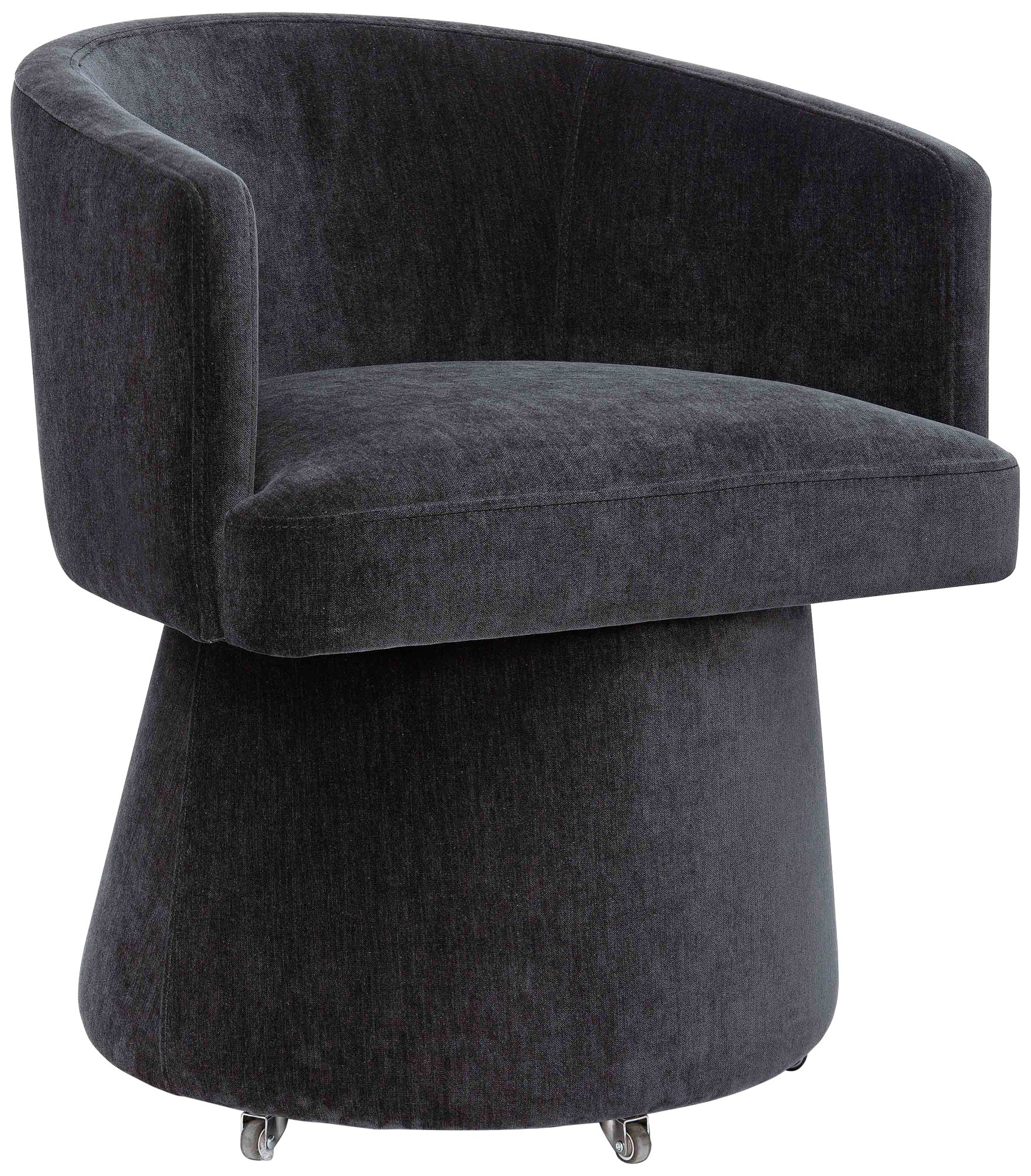 TOV Kristen 24" Wide Black Upcycled Chenille Fabric Rolling Desk Chair