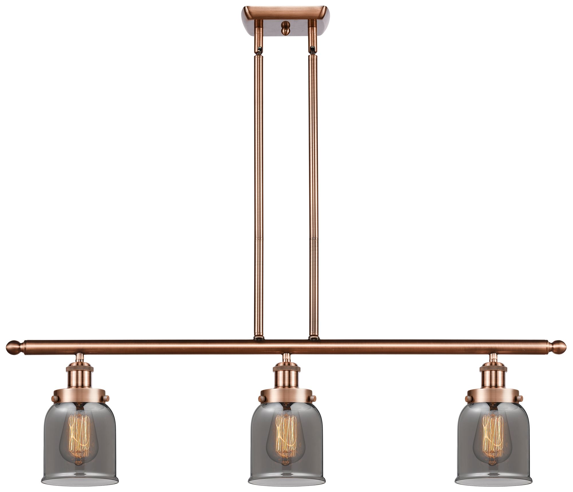 Bell 36" Wide 3 Light Copper Island Light w/ Plated Smoke Shade