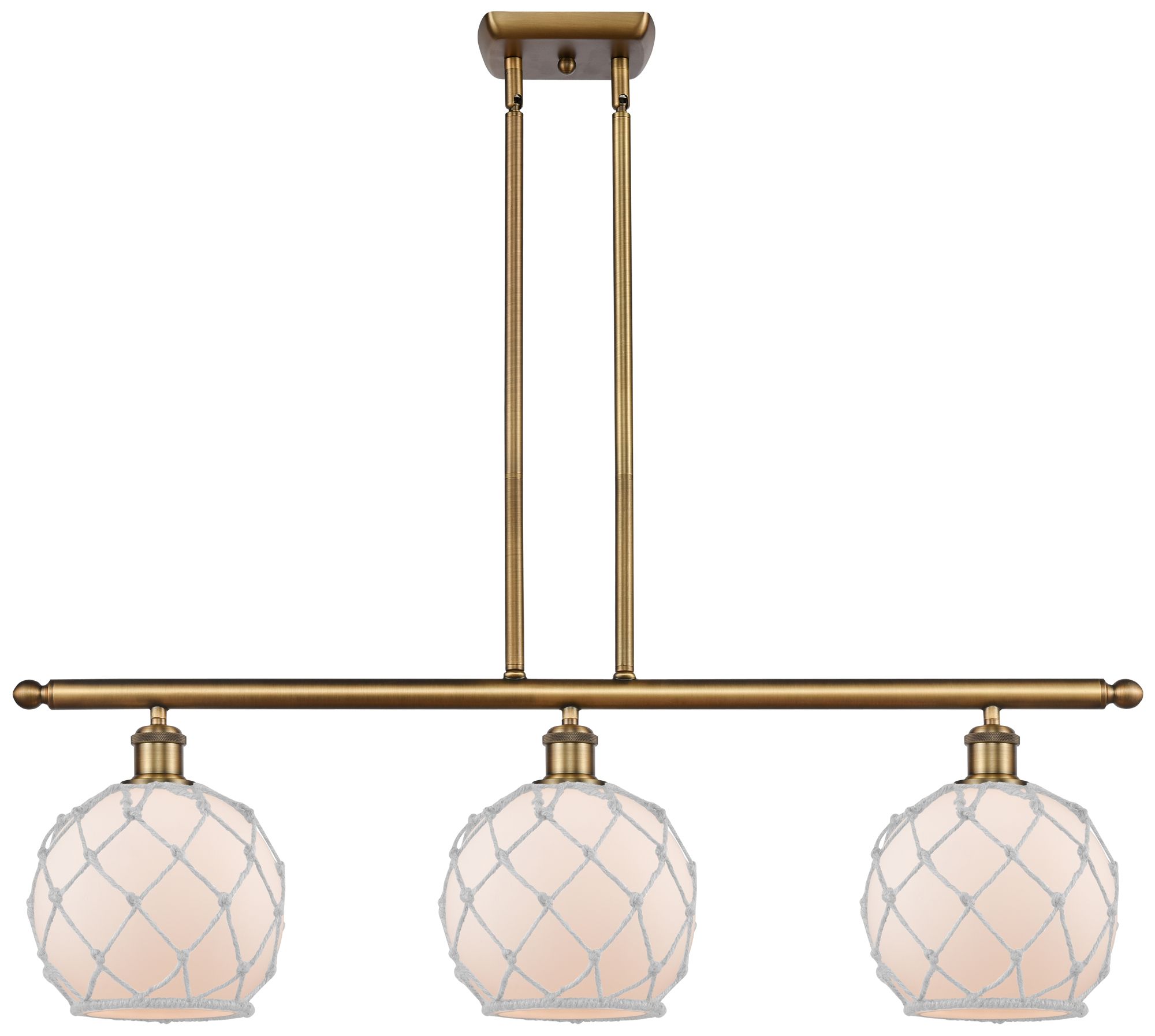 Farmhouse 36"W 3 Light Brushed Brass Island Light w/ White Shade