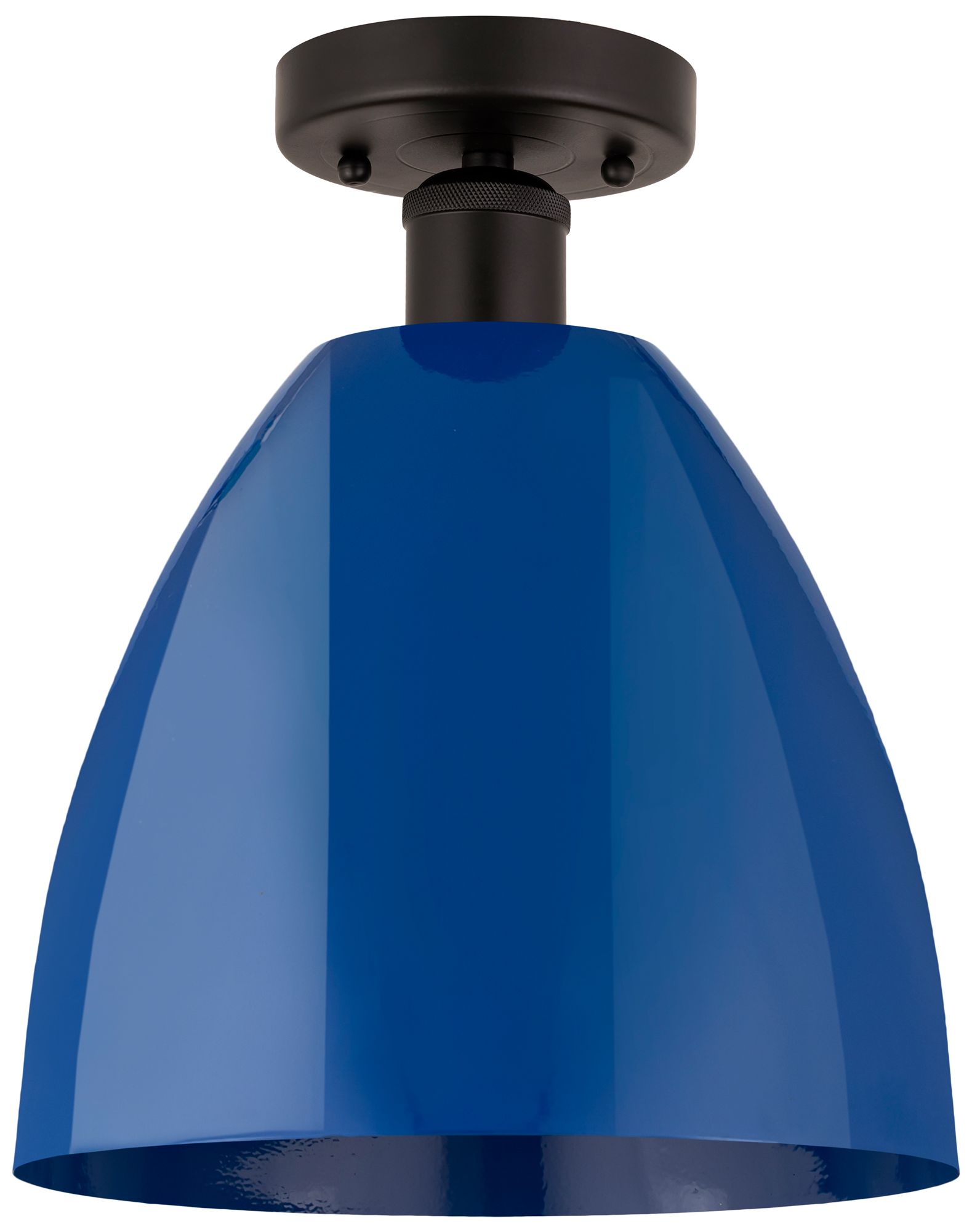 Edison Plymouth Dome 9" Wide Bronze Semi Flush Mount w/ Blue Shade