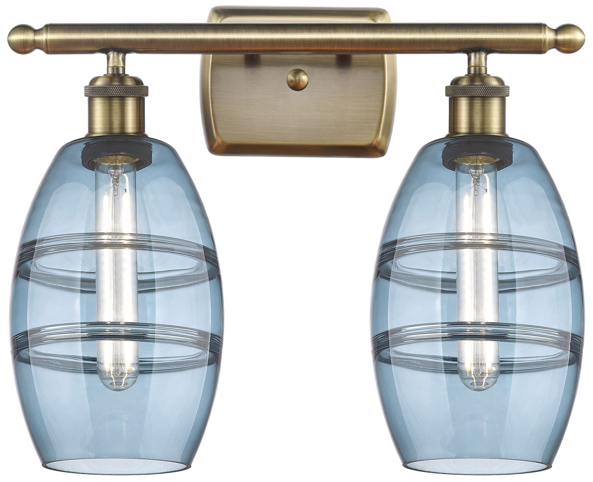 Ballston Vaz 15.88"W 2 Light Antique Brass Bath Light w/ Blue Shade