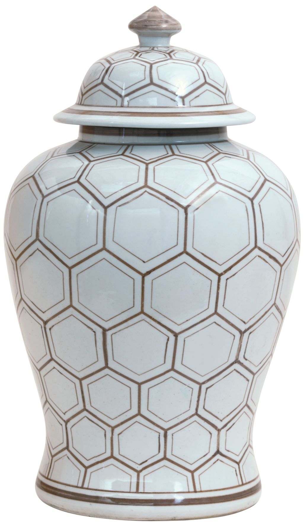 Kenilworth Brown and White 19"H Temple Jar with Lift-Off Lid