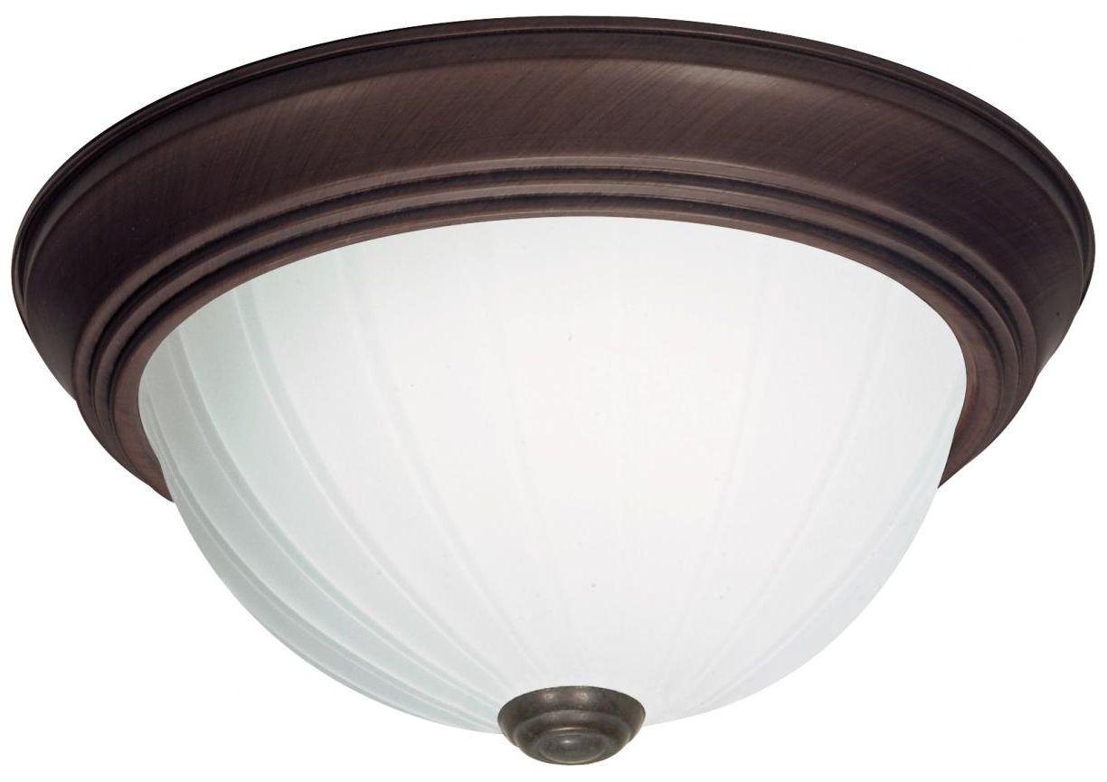 2 Light - 13" Flush with Frosted Melon Glass - Old Bronze Finish