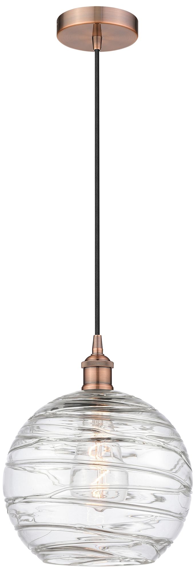 Athens 10" Antique Copper Mini Pendant w/ Clear Deco Swirl Shade