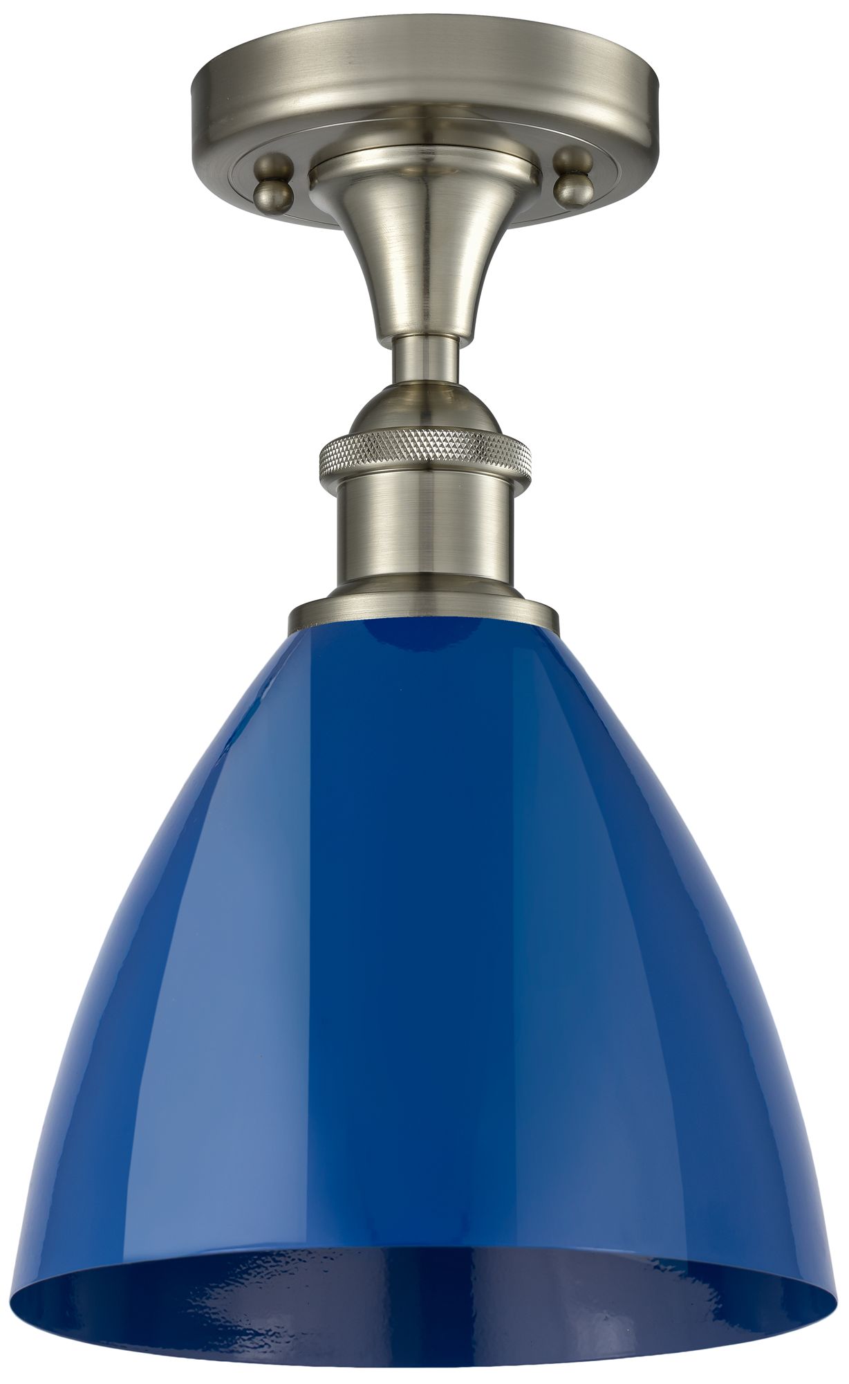 Plymouth Dome 7.5" Wide Brushed Satin Nickel Semi Flush Mount w/ Blue