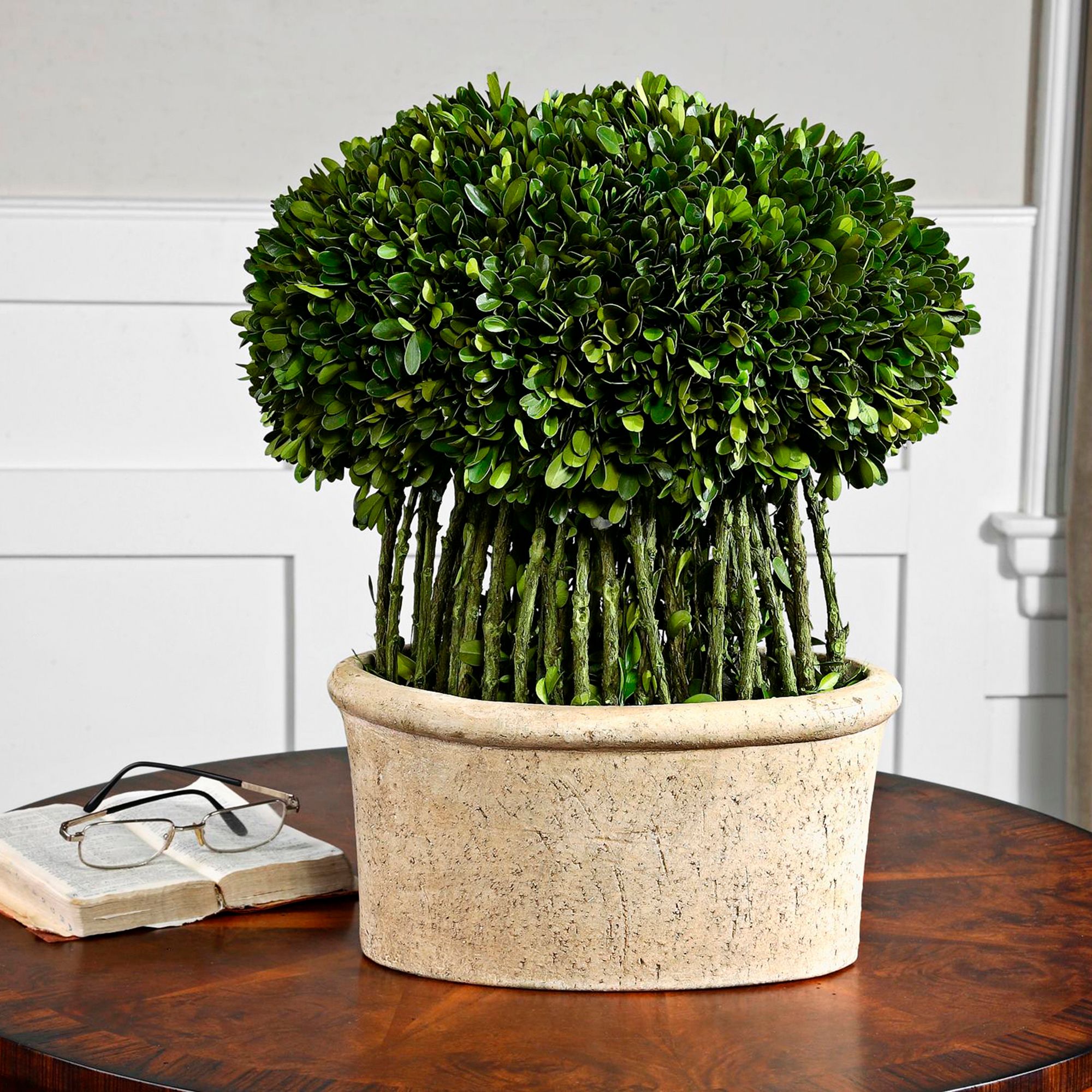 Green Willow 17" High Boxwood Topiary Faux Plant in Planter