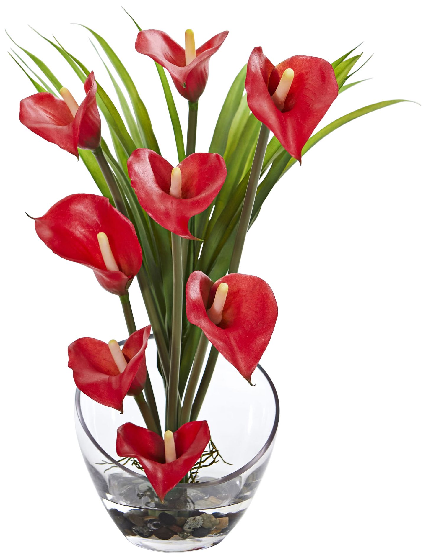 Red Calla Lily and Grass 15 1/2" Wide Faux Flowers in Vase