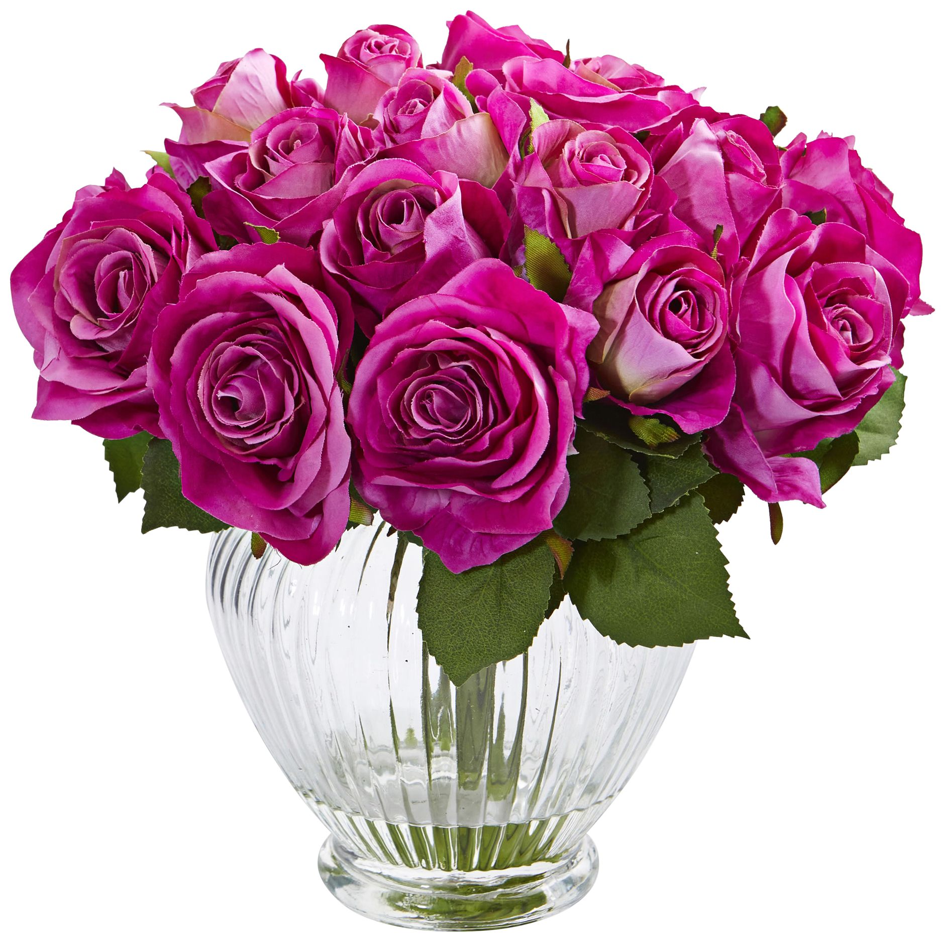 Purple Rose 10" Wide Faux Flowers in Round Glass Vase