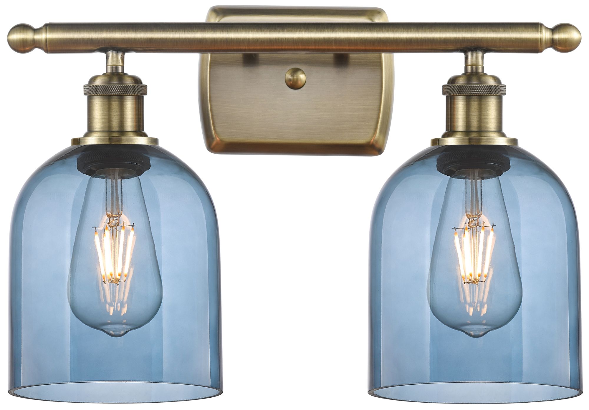 Ballston Bella 15.5"W 2 Light Antique Brass Bath Light w/ Blue Shade