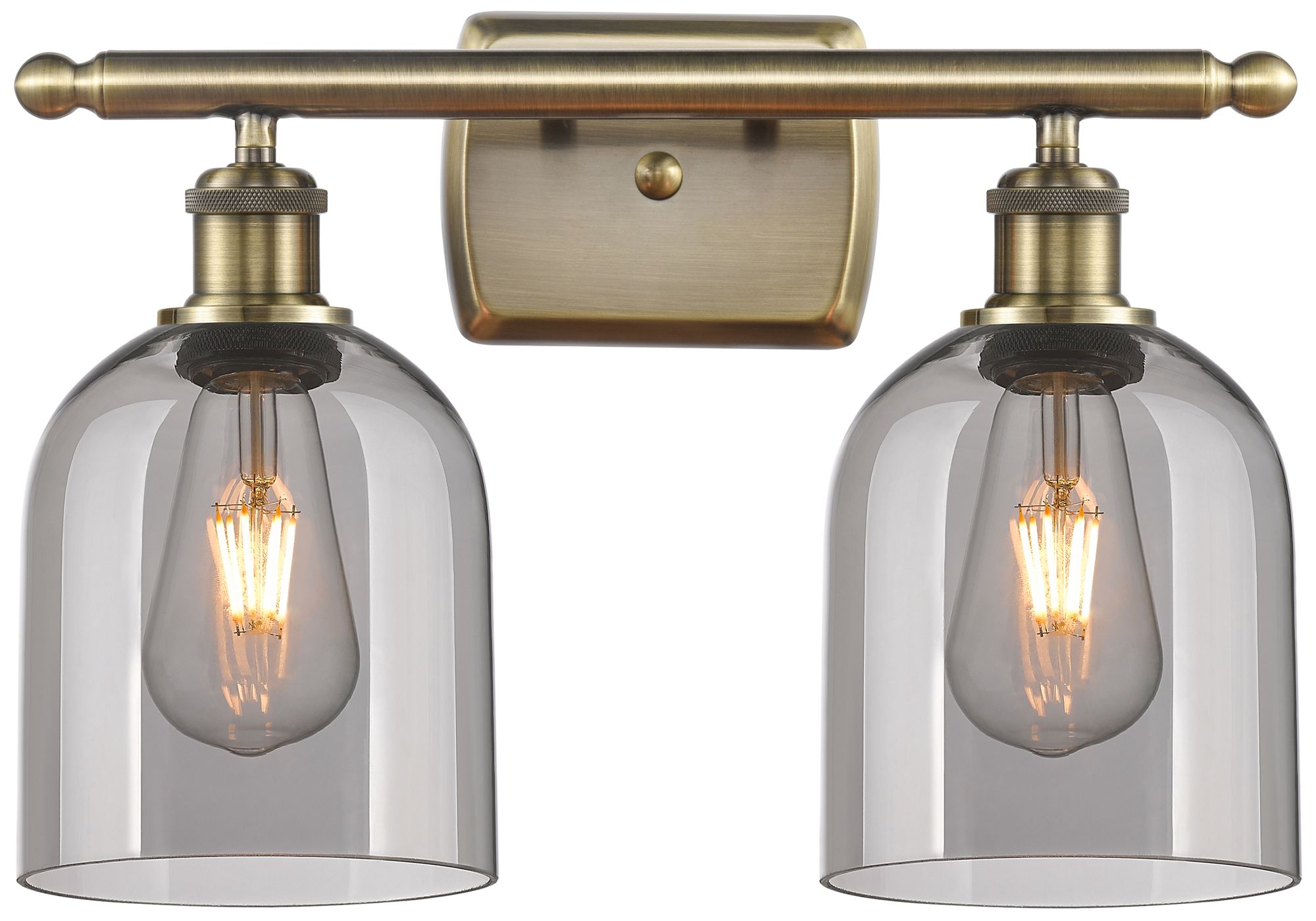 Ballston Bella 15.5"W 2 Light Antique Brass Bath Light w/ Light Smoke