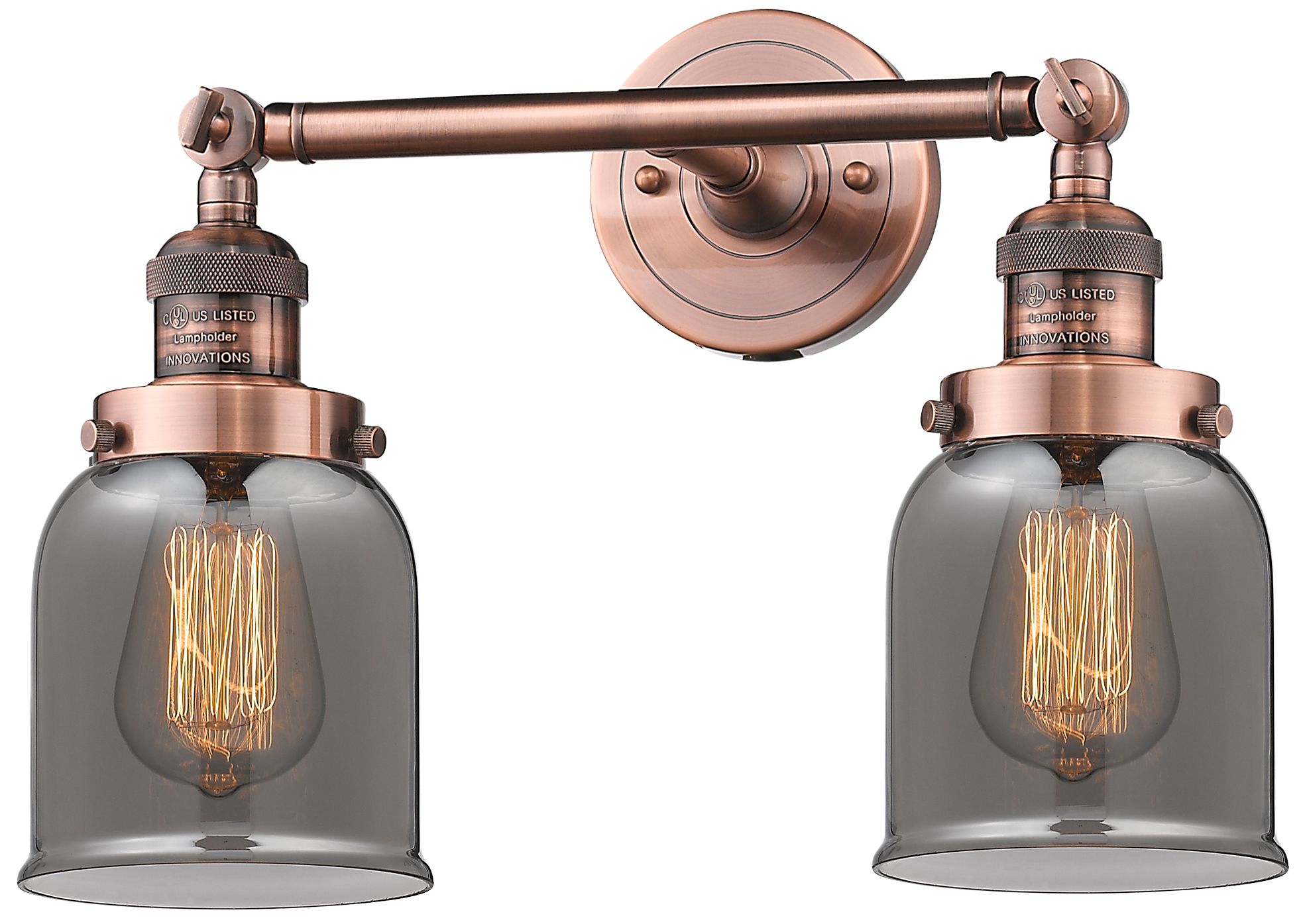 Small Bell 16" 2-Light Antique Copper Tiltable Bath Light w/ Smoke Sha