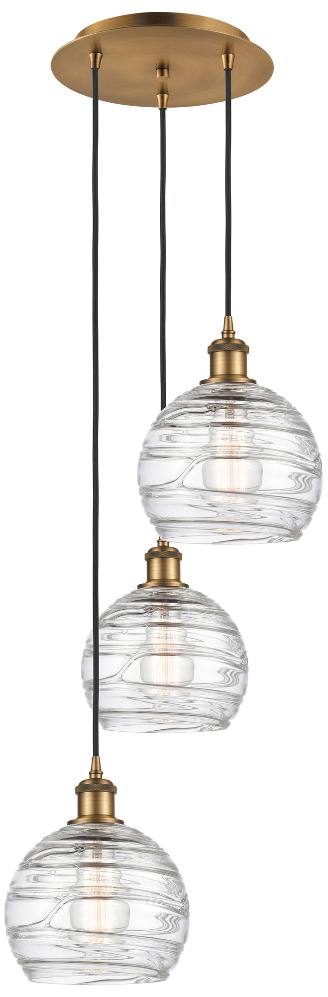 Athens 14.75"W 3 Light Brushed Brass Multi-Pendant w/ Deco Swirl Shade