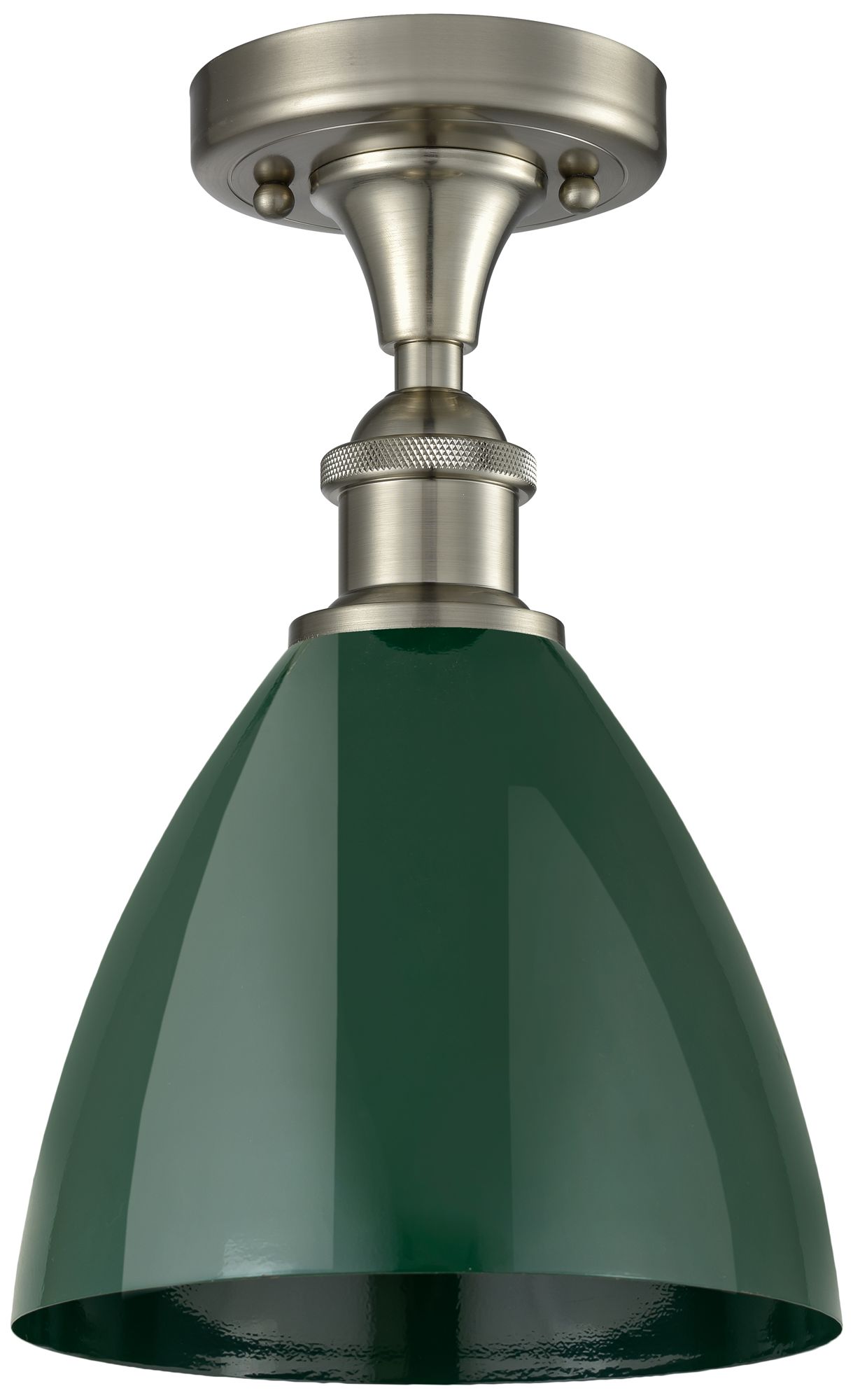 Plymouth Dome 7.5"W Brushed Satin Nickel Semi Flush Mount w/ Green Sha