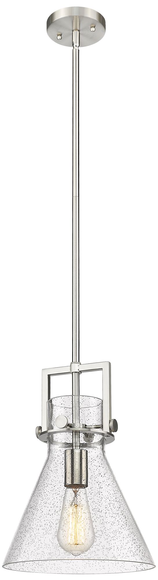 Newton Cone 10" Wide Stem Hung Satin Nickel Pendant With Seedy Shade