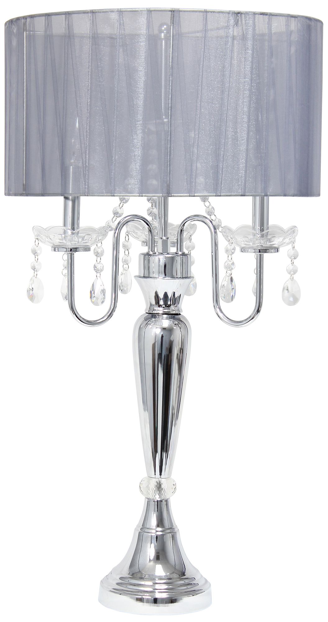 Lalia Home 31" Chrome Cascading Crystal Table Lamp, Gray Shade