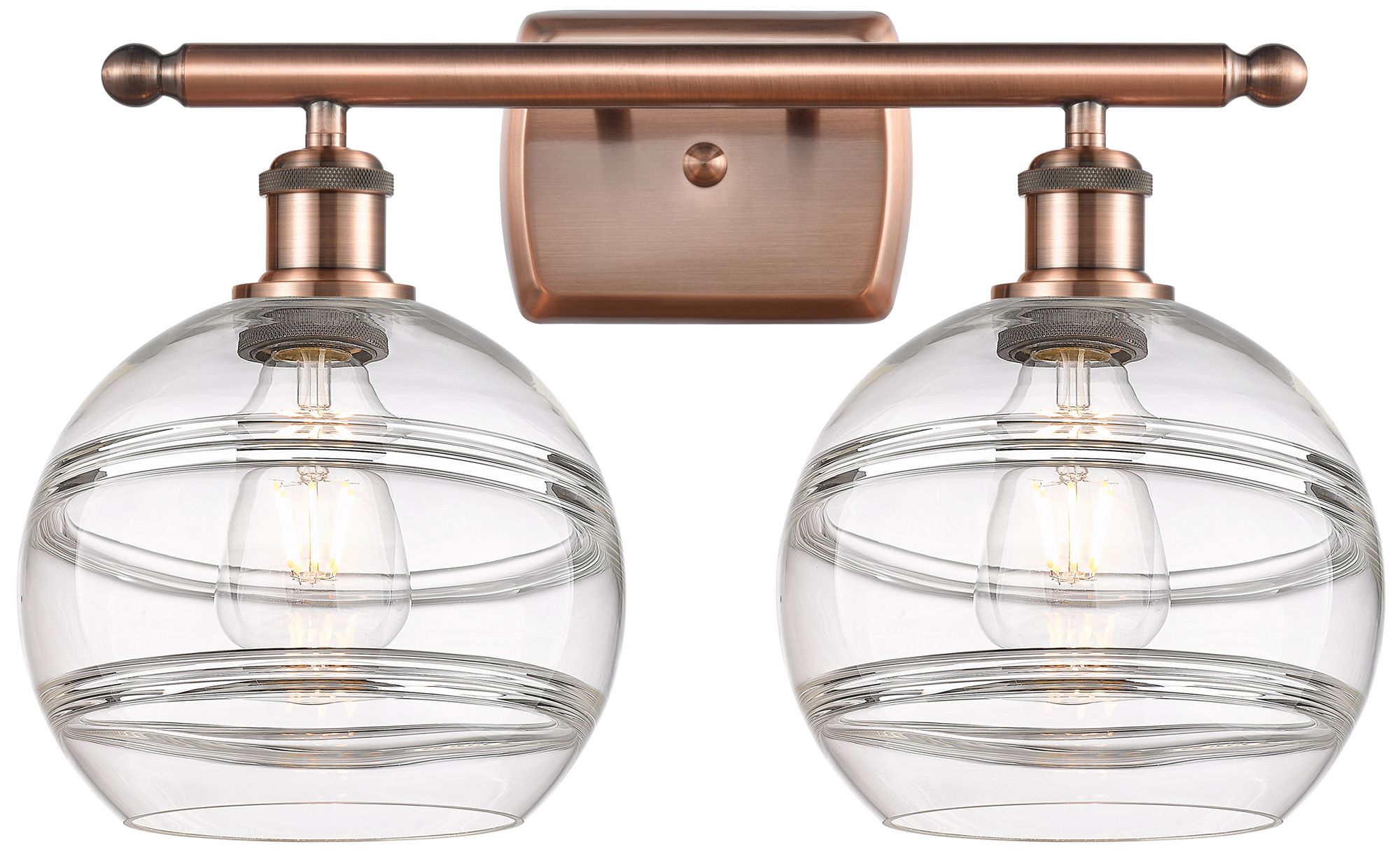 Ballston Rochester 18"W 2 Light Antique Copper Bath Light w/ Clear Sha