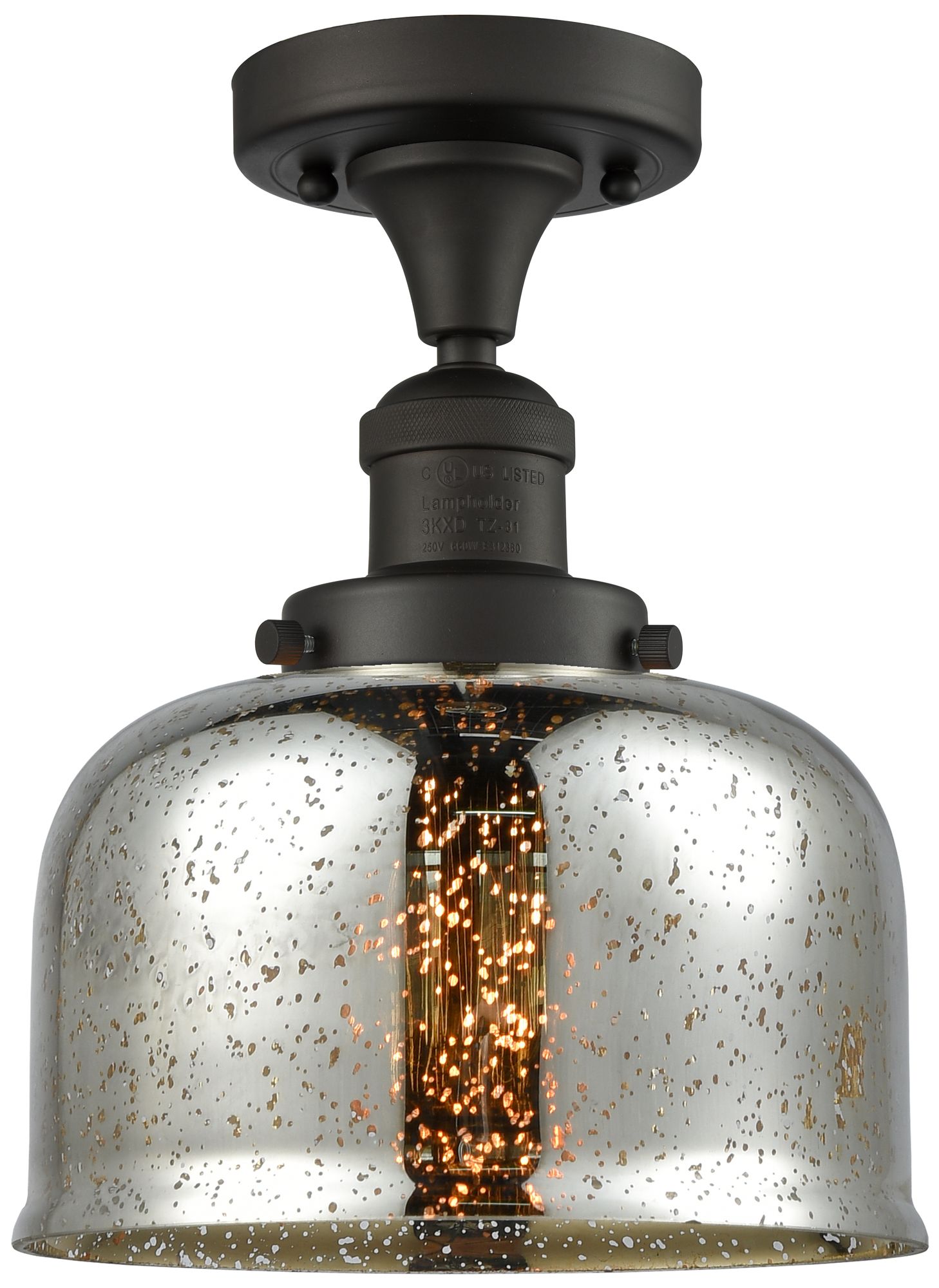 Bell 8" Oil Rubbed Bronze Semi Flush Mount w/ Silver Plated Mercury Sh