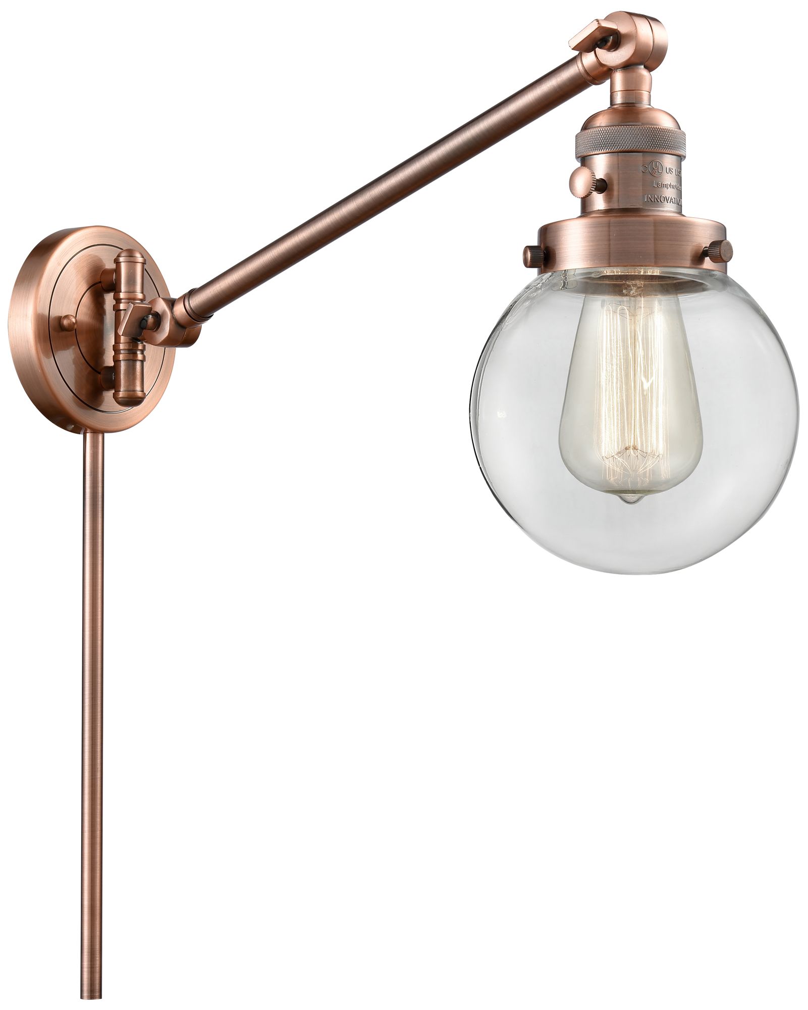 Beacon 6" Antique Copper Swing Arm With Clear Shade