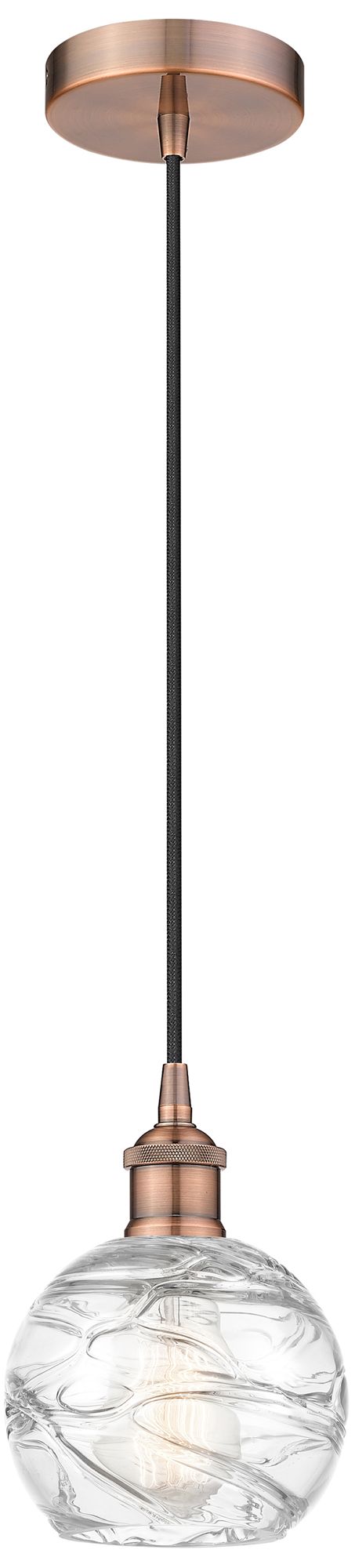Athens 6" Antique Copper Mini Pendant w/ Clear Deco Swirl Shade