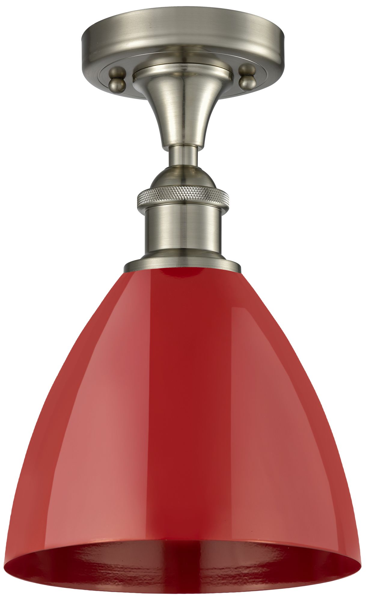 Plymouth Dome 7.5" Wide Brushed Satin Nickel Semi Flush Mount w/ Red S