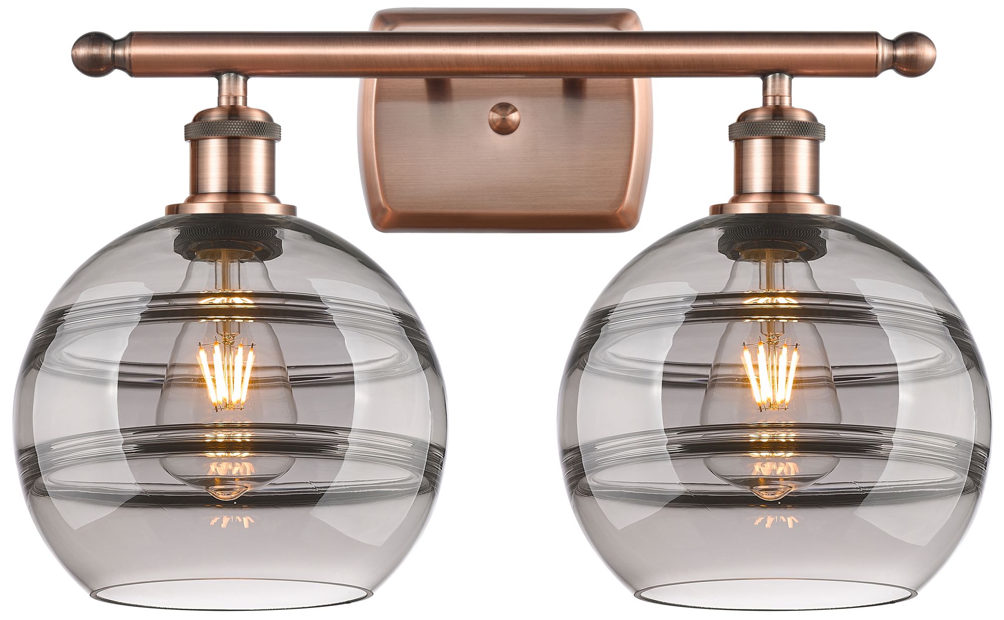 Ballston Rochester 18"W 2 Light Copper Bath Light w/ Light Smoke Shade