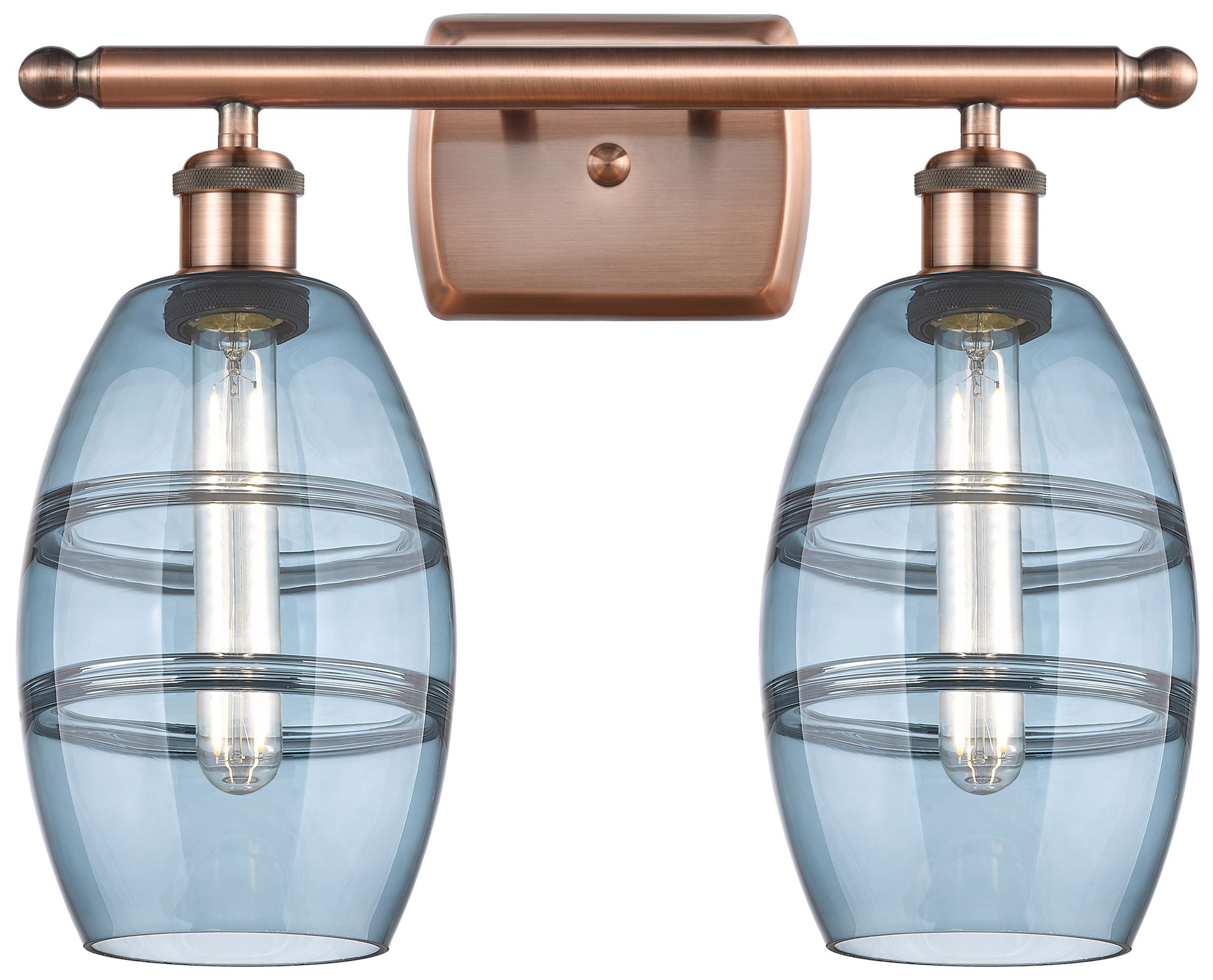Ballston Vaz 15.88"W 2 Light Copper Bath Light w/ Princess Blue Shade