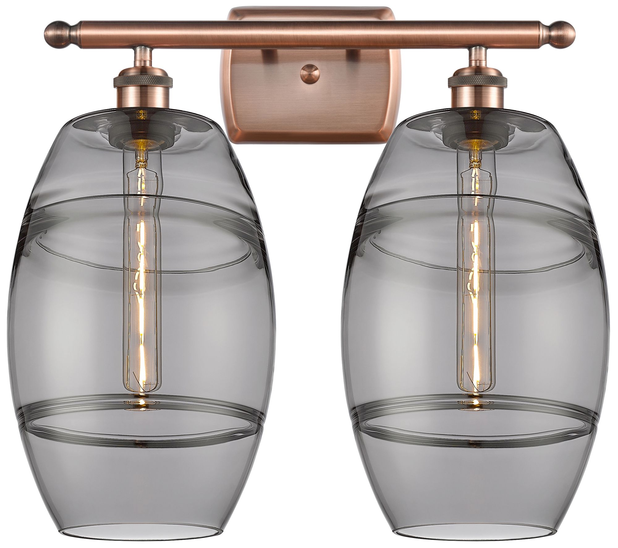 Ballston Vaz 18"W 2 Light Antique Copper Bath Light w/ Light Smoke Sha