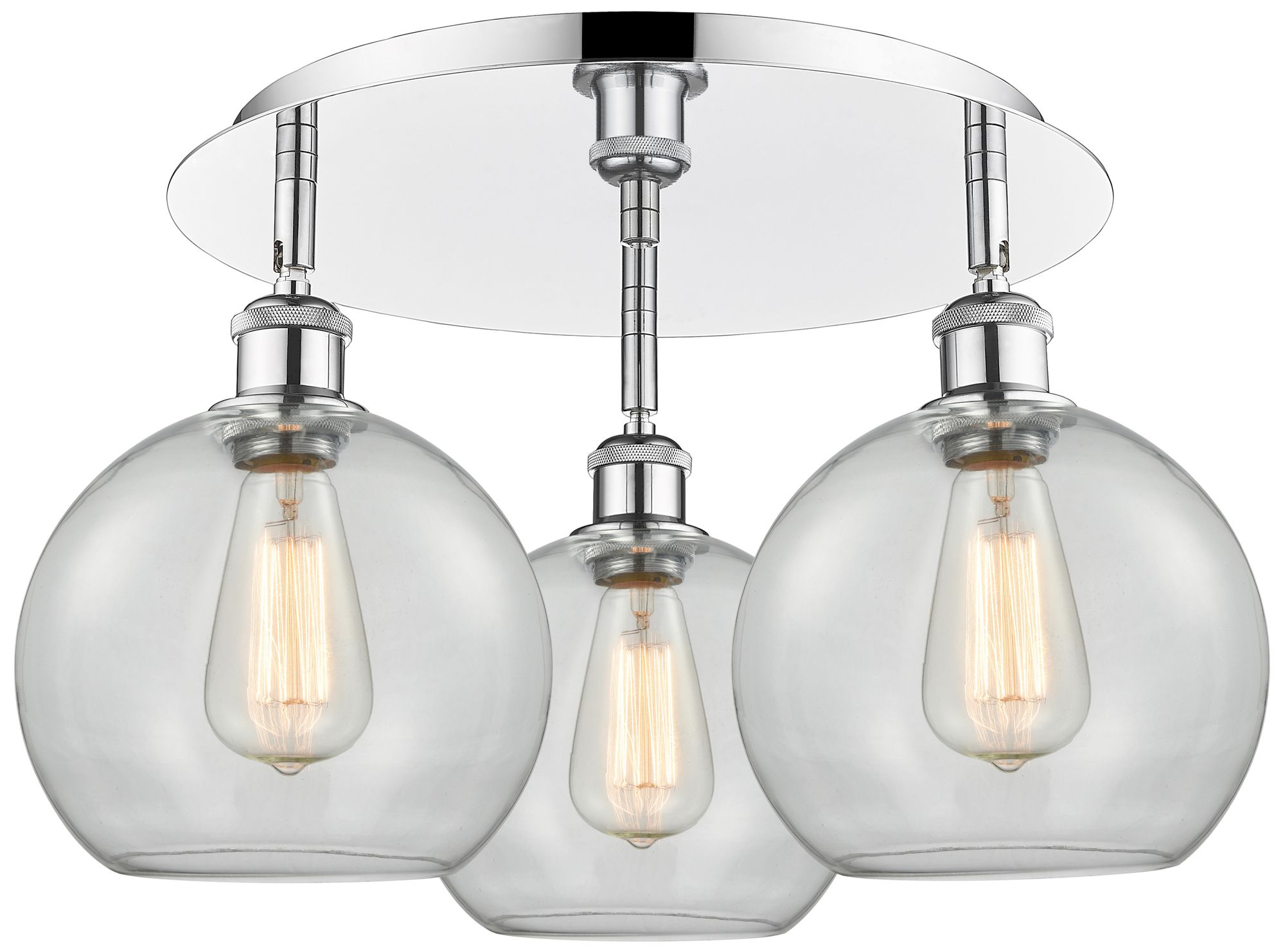 Athens 19.75" Wide 3 Light Polished Chrome Flush Mount With Clear Shad