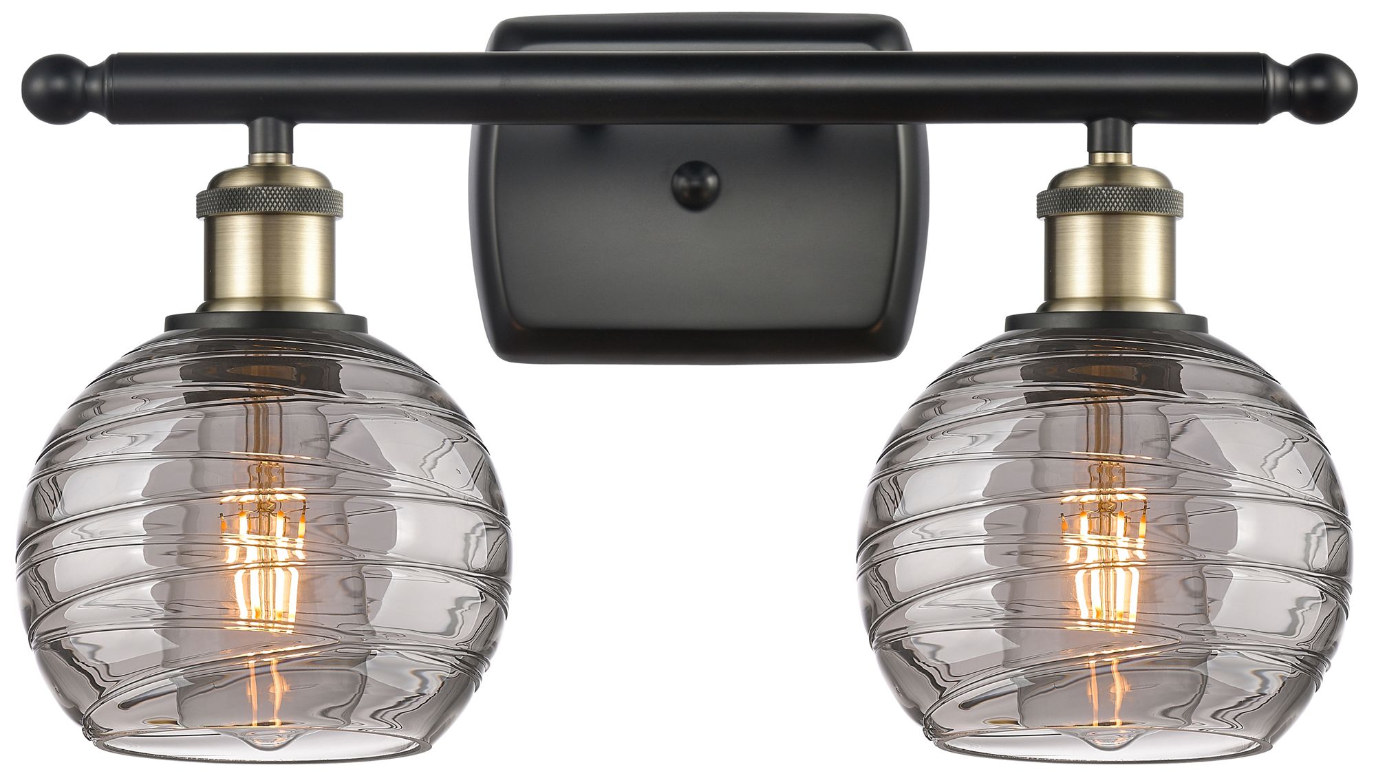 Ballston Athens 15.88"W 2 Light Black Brass Bath Light w/ Smoke Swirl
